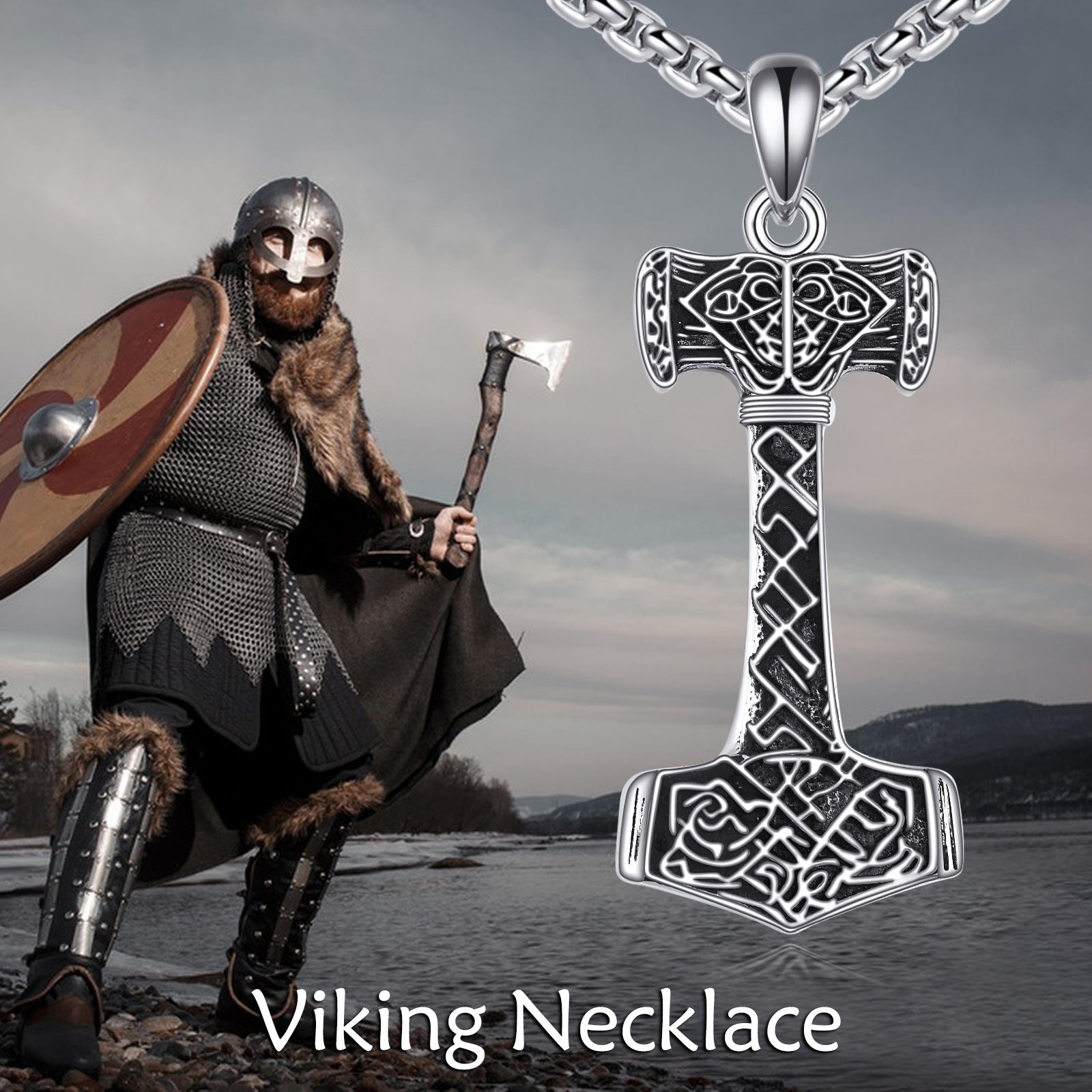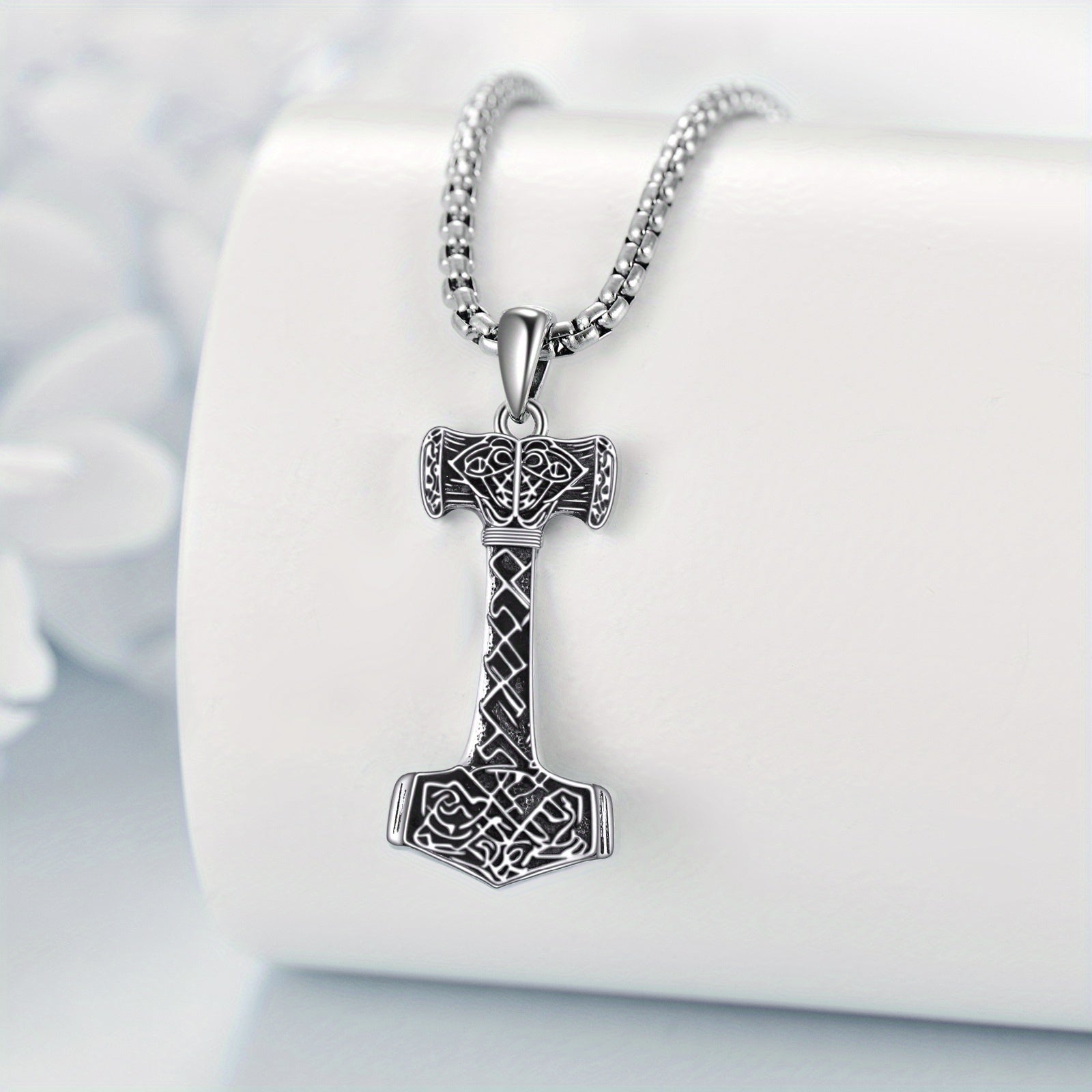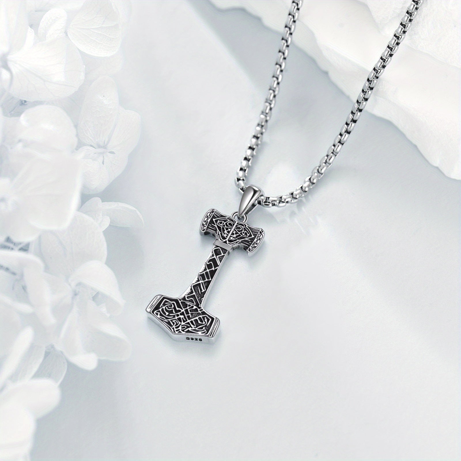 Elevate your style with this 925 pure silver Nordic vintage Thor's Hammer necklace. The perfect Viking jewelry gift for men.