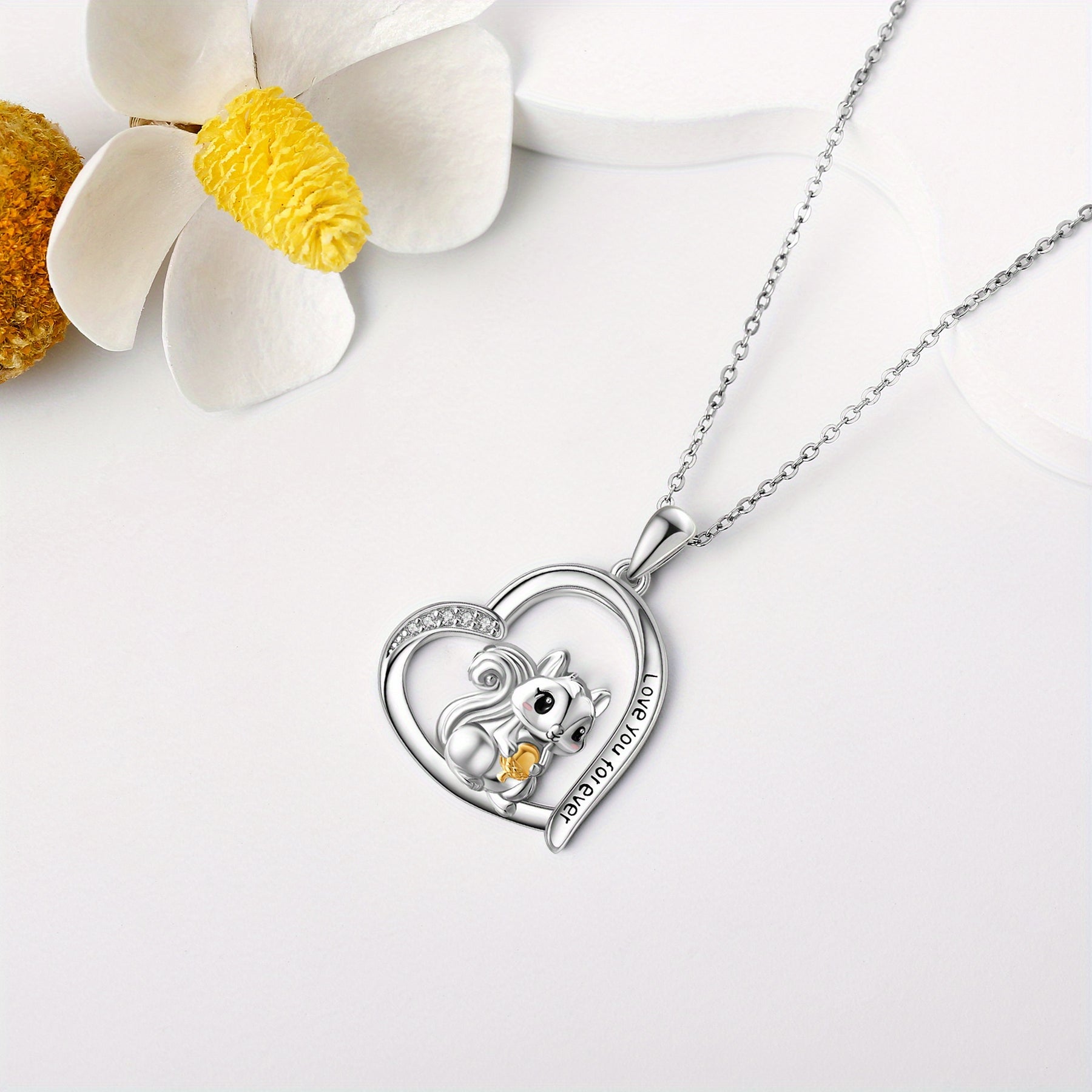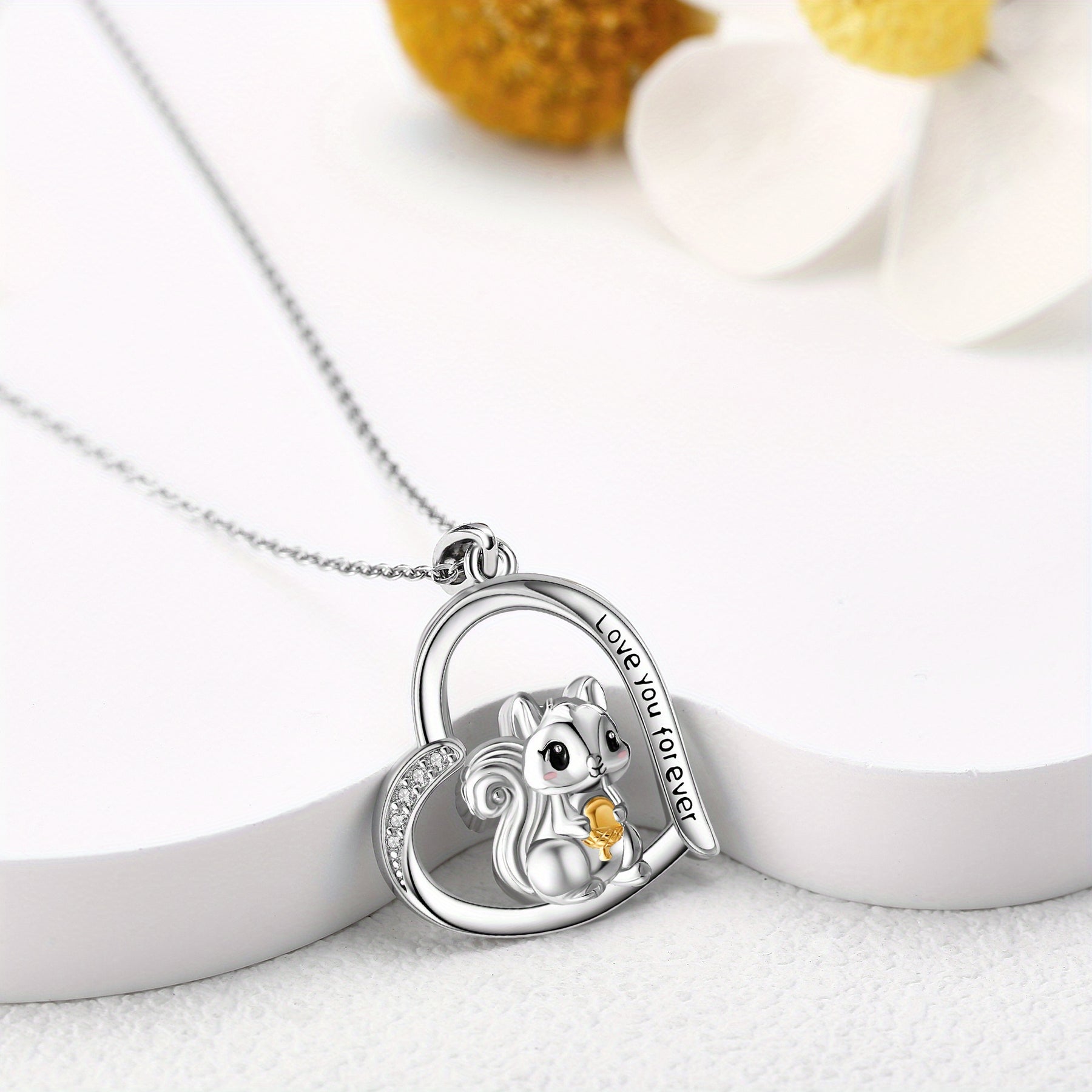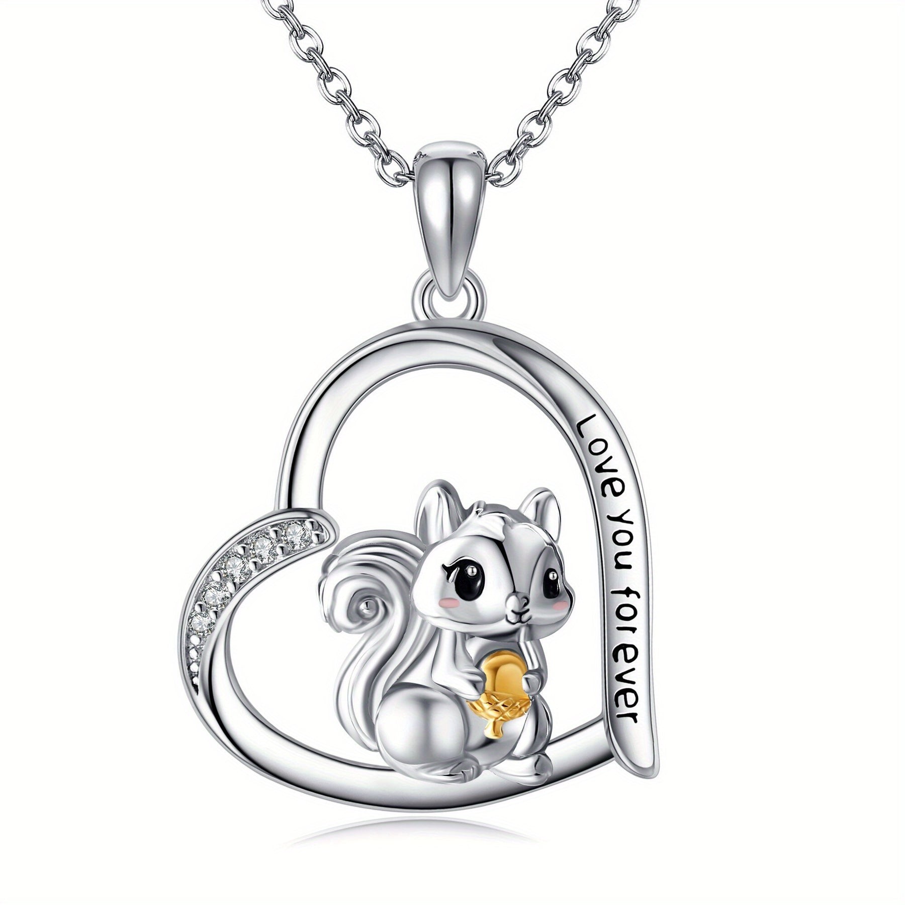This exquisite pendant necklace features a 925 pure silvery squirrel heart design, making it a perfect gift for girls and mothers. The intricate detailing adds a touch of elegance to any outfit.