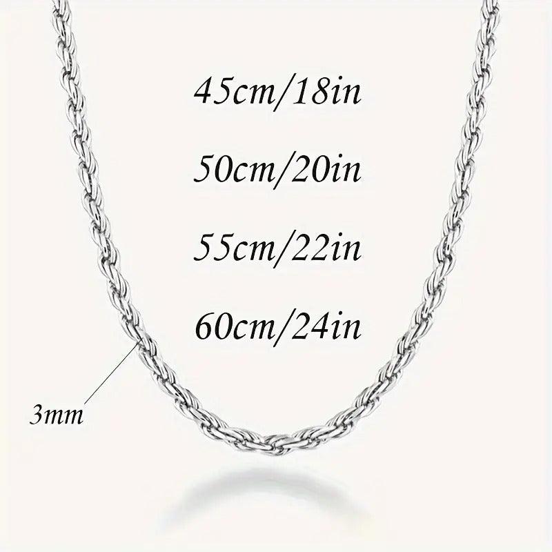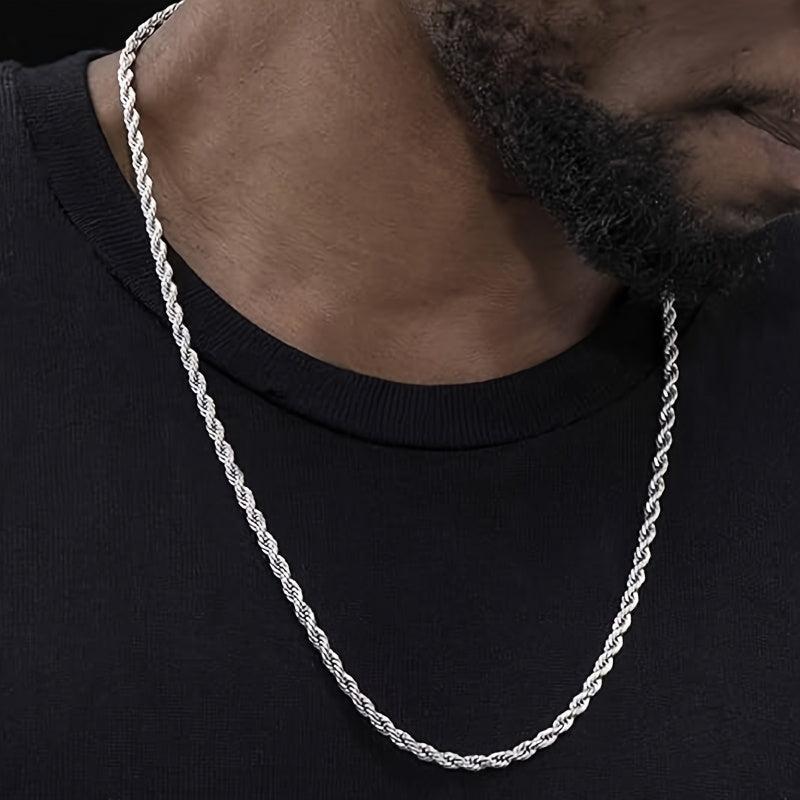 Elegant and durable rope chain necklace with stylish Italian woven design. Made of solid 925 sterling silver, this necklace is the perfect gift for any occasion.