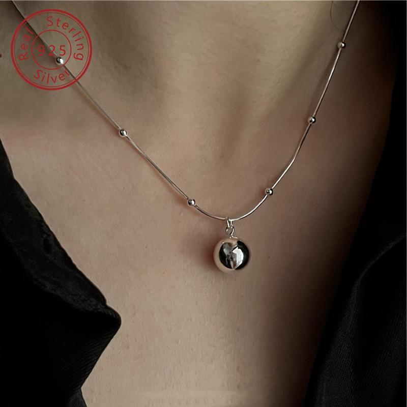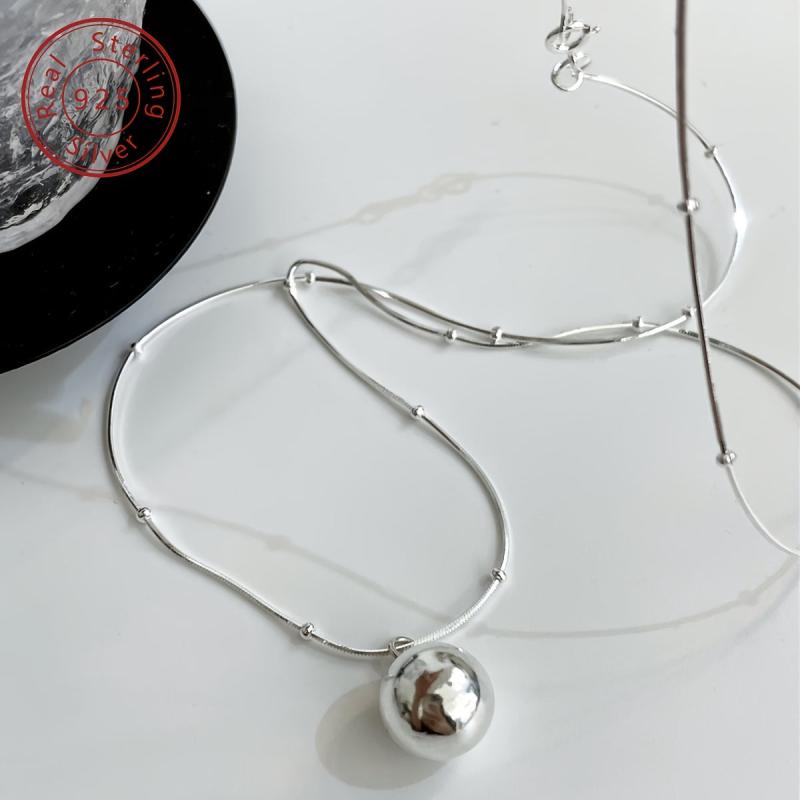 925 Sterling Silver Ball Snake Bone Necklace for Women