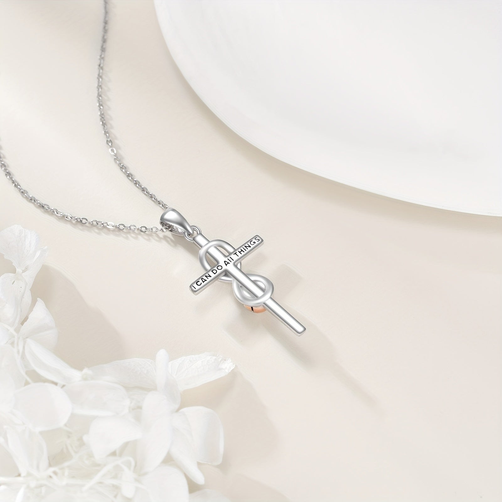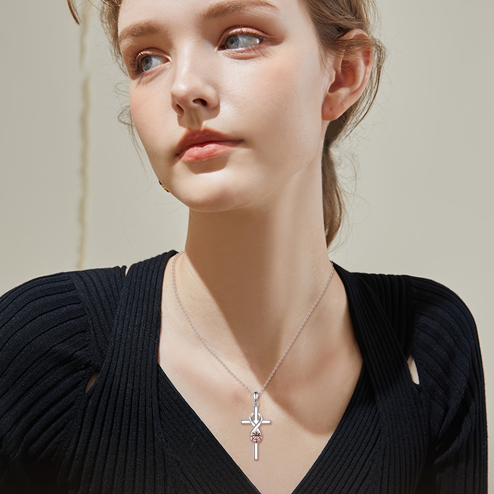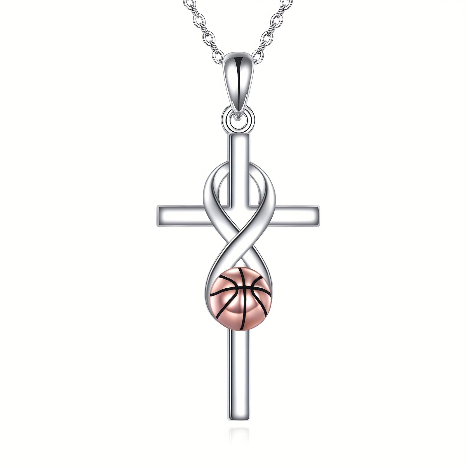 This 925 sterling silver basketball necklace features a stylish cross design, making it a perfect piece of basketball jewellery for both women and men.