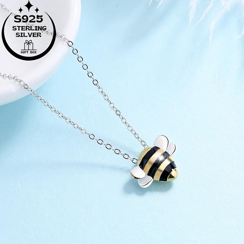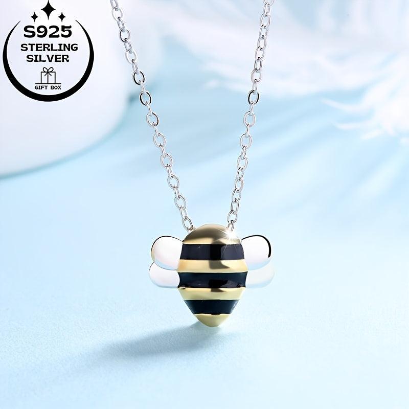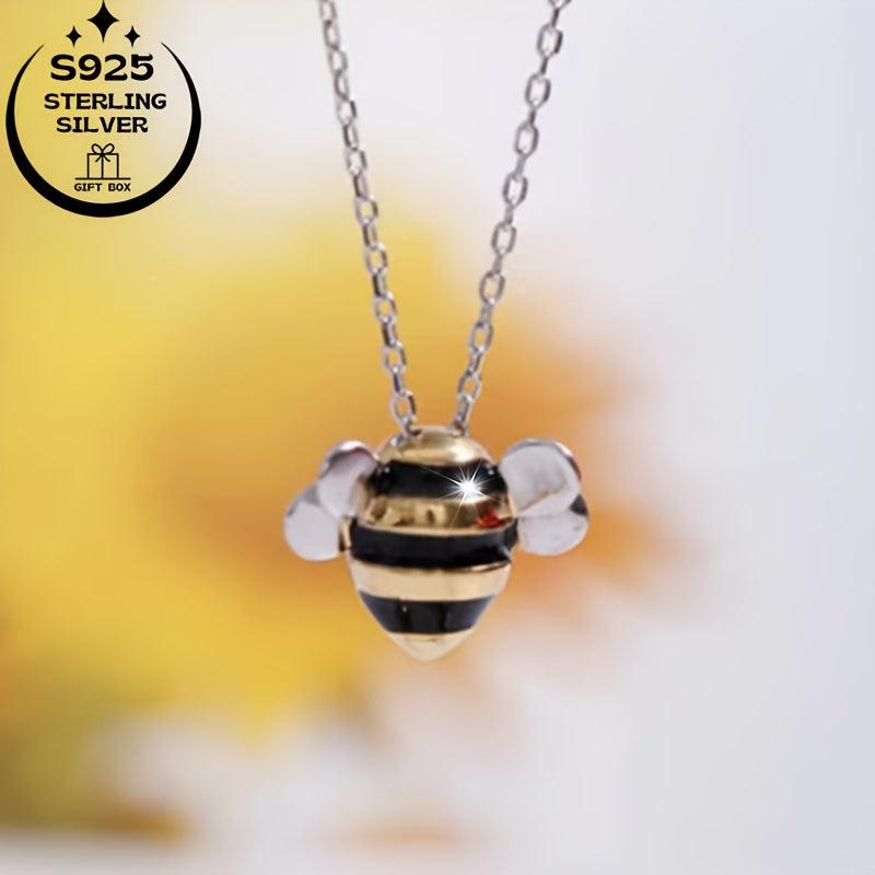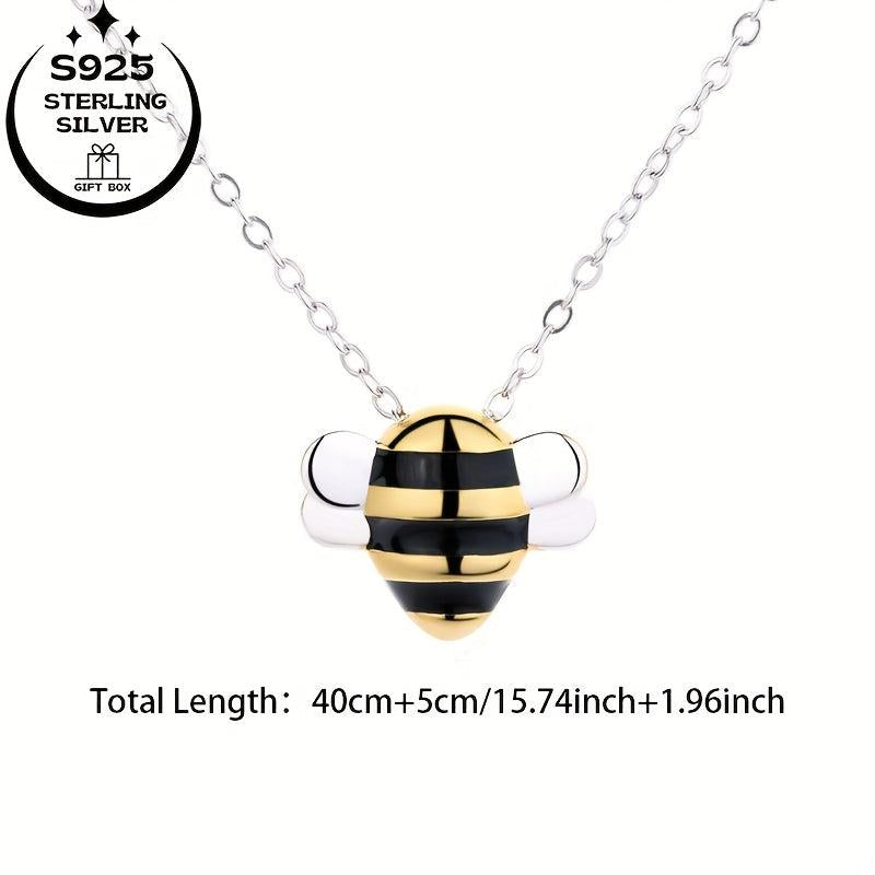 This stunning necklace features a 925 sterling silver bee pendant with golden tone accents, making it a perfect gift for various occasions like Mother's Day, Graduation, Thanksgiving, parties, daily wear, and beach holidays.