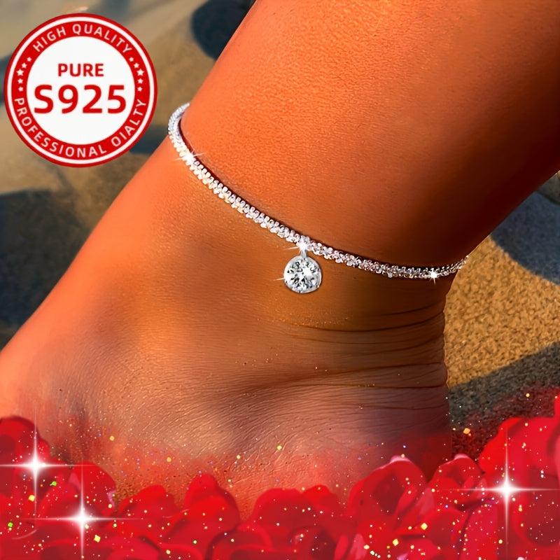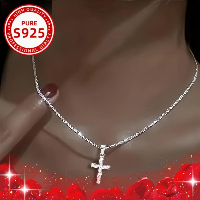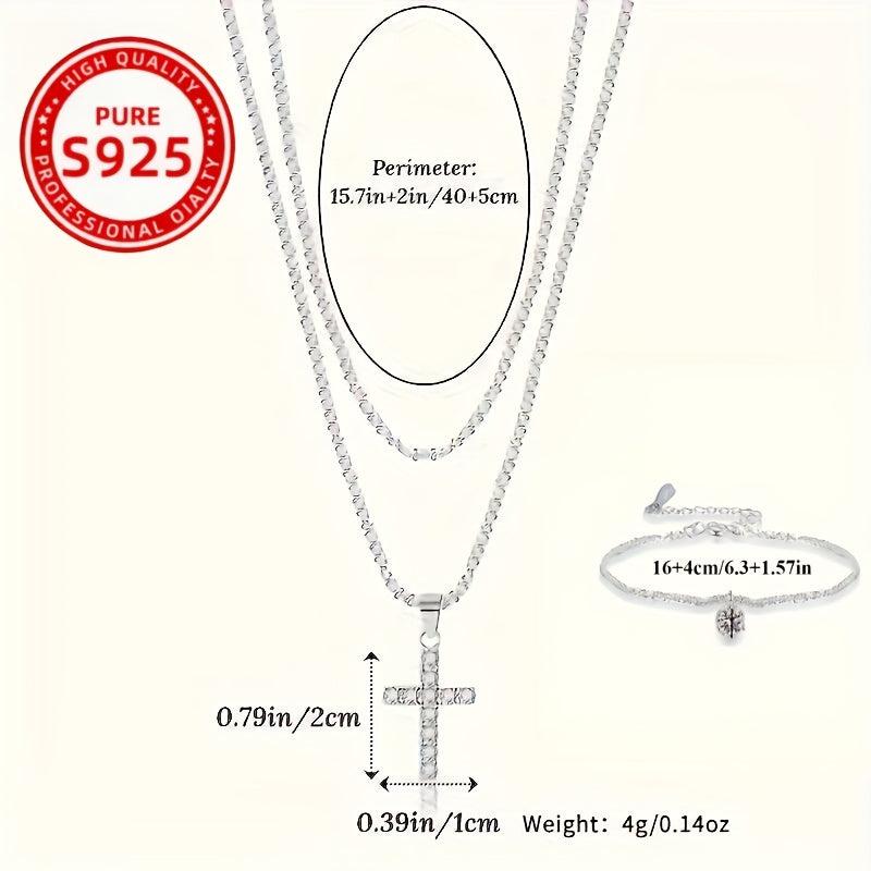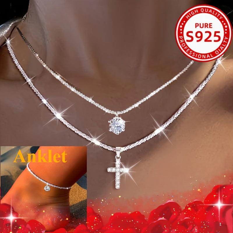 Elegant set featuring a cross necklace and anklet made of 925 sterling silver with synthetic zirconia stones. Perfect for adding a touch of sparkle to your outfit.