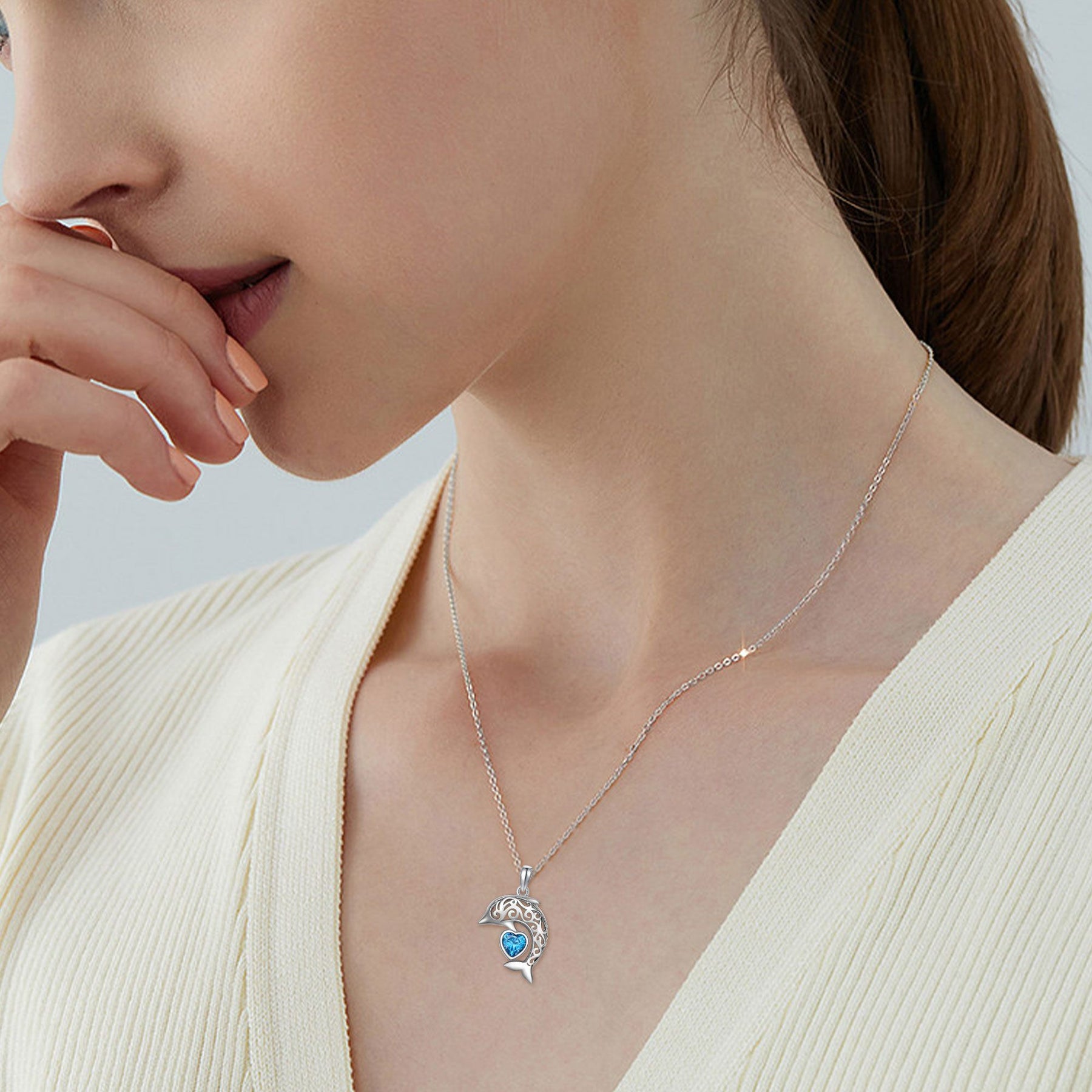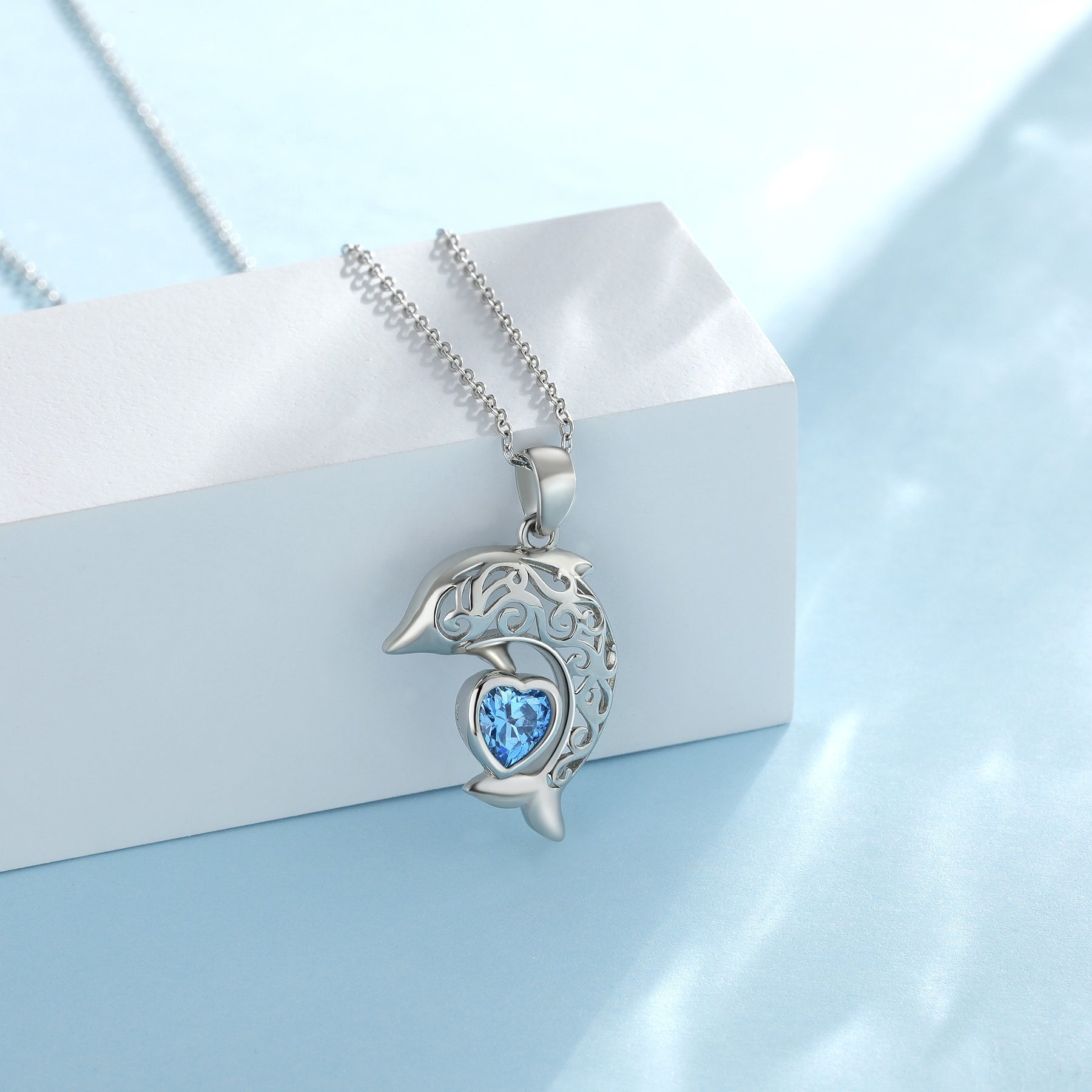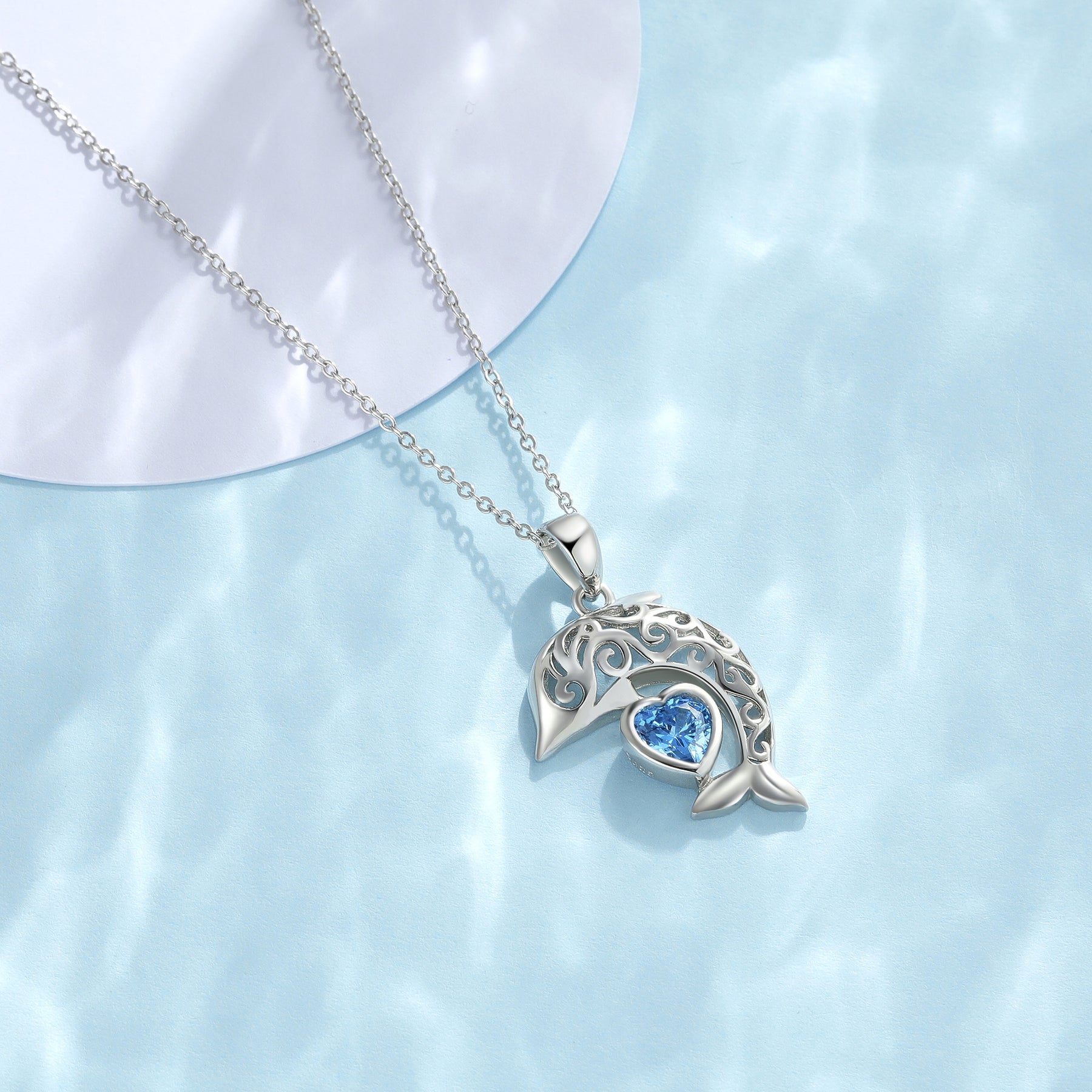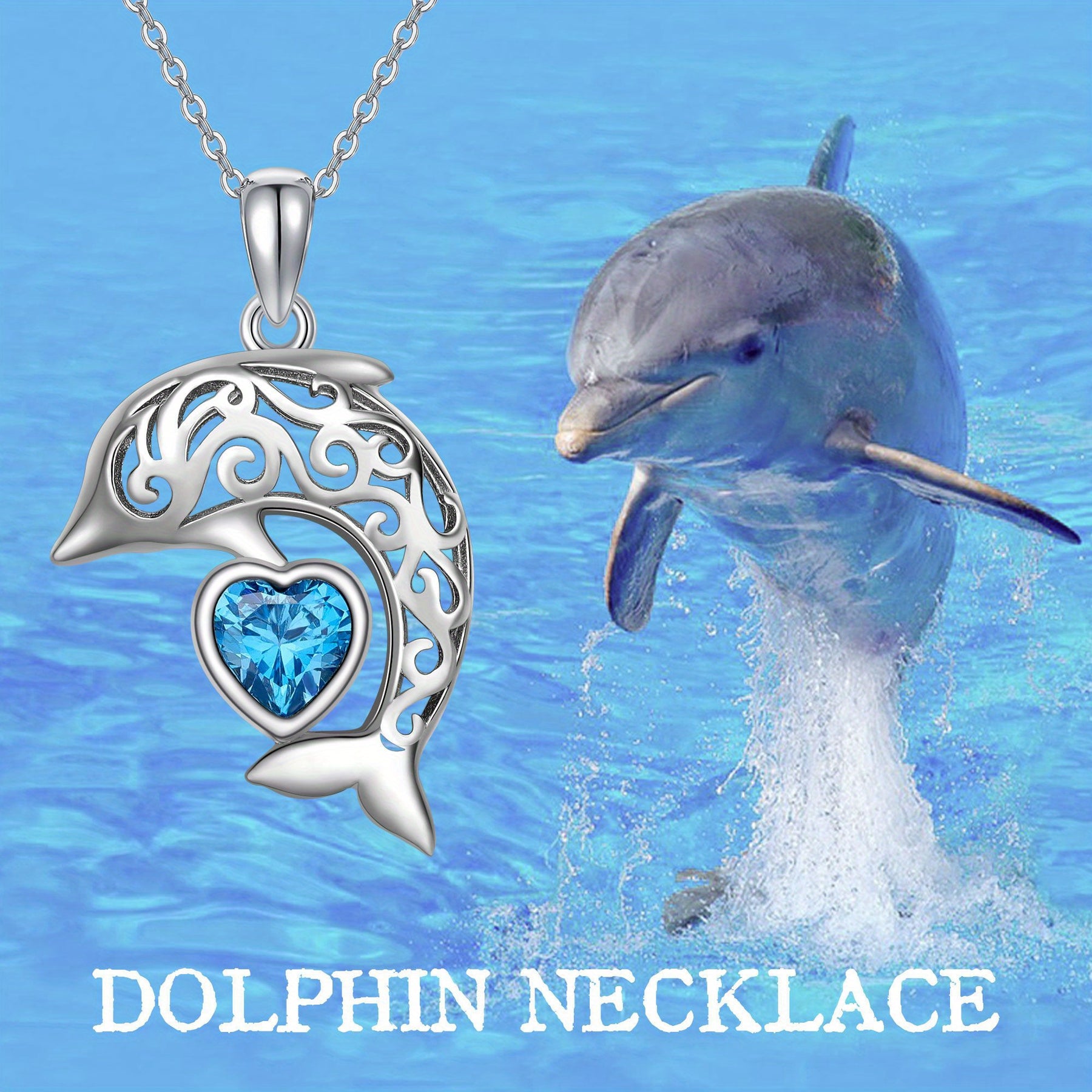 This dolphin necklace is made of 925 sterling silver, featuring a dolphin pendant. Perfect ocean-themed gift for men and women.