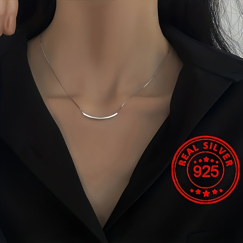 This elegant pendant necklace is made of 925 sterling silver, weighing about 4g. It features a charming smile design that adds a touch of sophistication to any outfit.