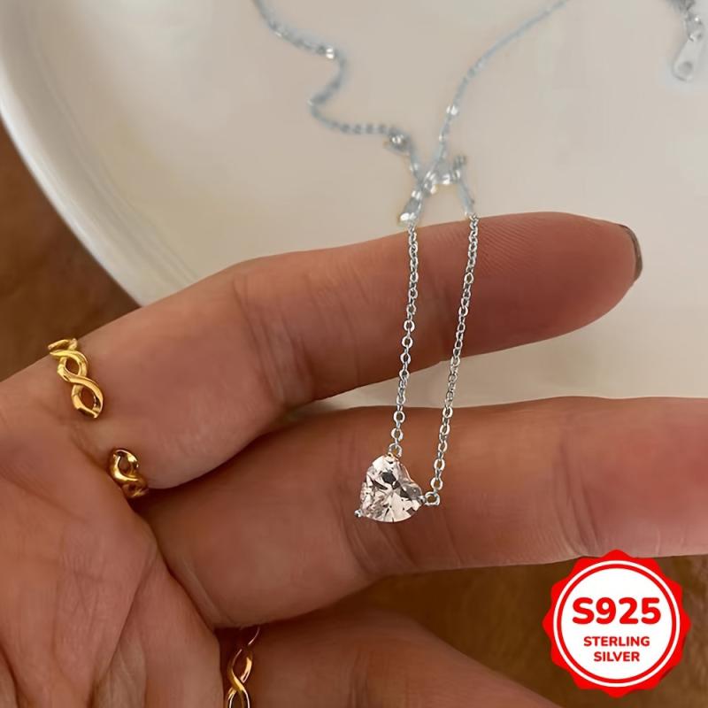 This beautiful necklace features a heart-shaped pendant crafted from 925 sterling silver, making it an elegant addition to any outfit. Perfect for daily wear or as a thoughtful gift for birthdays and Christmas.