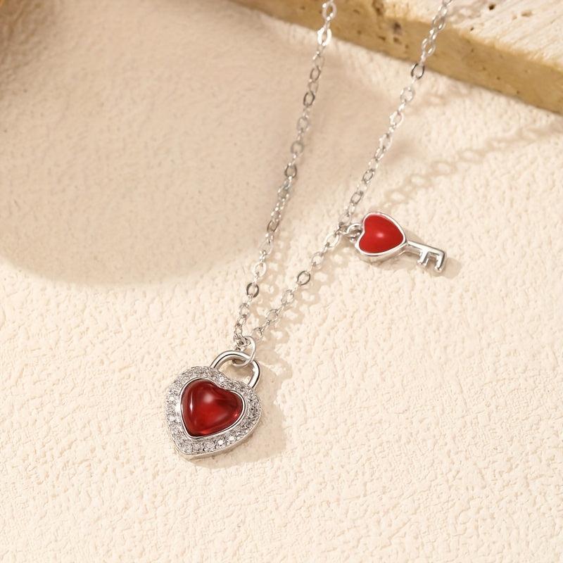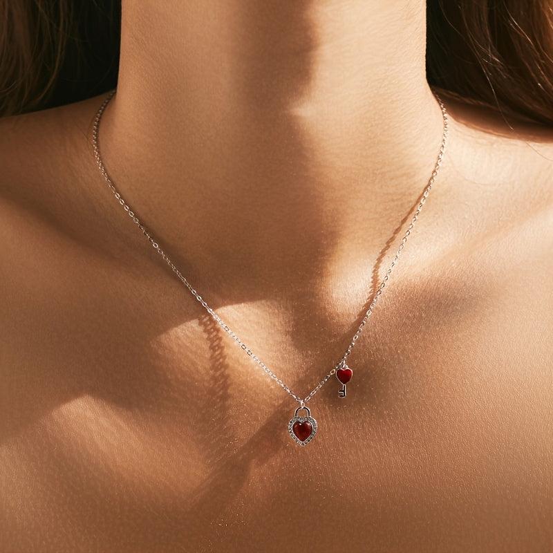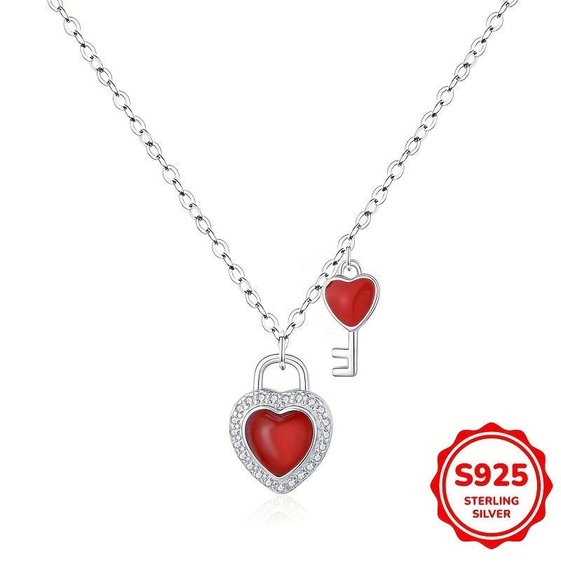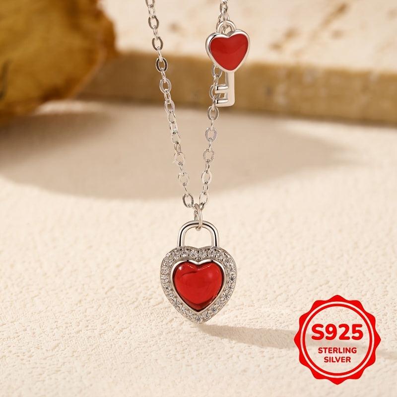 Express your love with this romantic sweet love lock necklace made of 925 sterling silver featuring a synthetic garnet. Perfect for anniversaries or as a gift for friends.