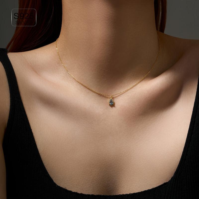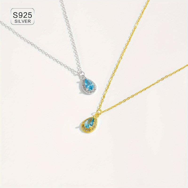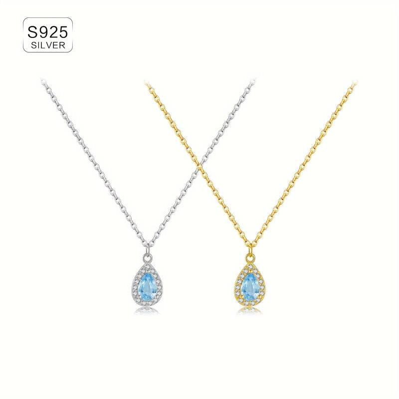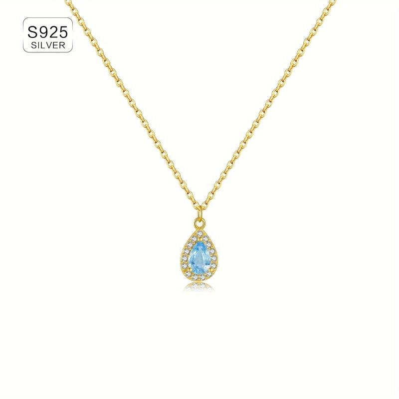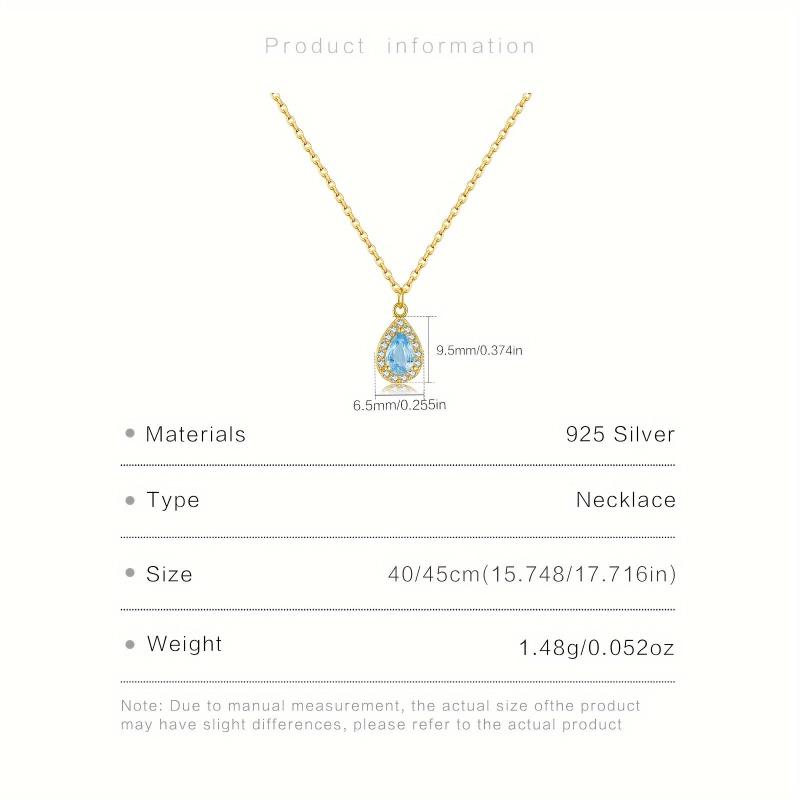 This stunning 925 sterling silver necklace features a teardrop pendant adorned with synthetic zirconia, and is 18K golden plated. It is hypoallergenic and perfect for Valentine's banquets.