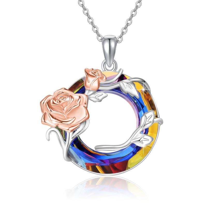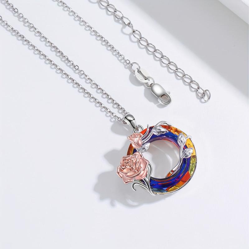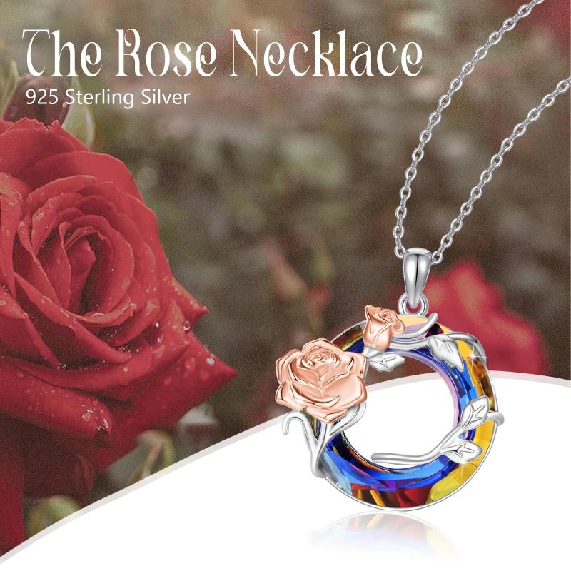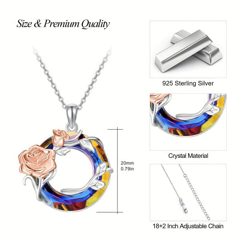 Add a touch of elegance to your outfit with this beautiful rose pendant necklace. Made of 925 sterling silver and featuring an artificial crystal rose, this necklace is a perfect accessory for any occasion.