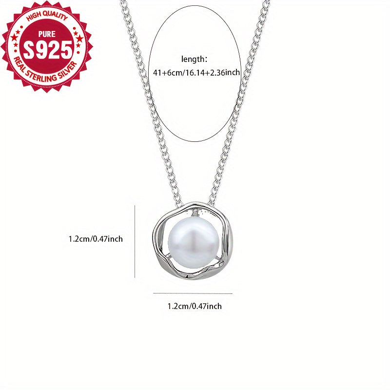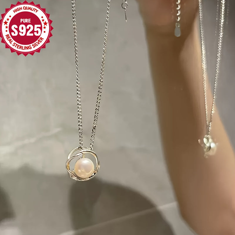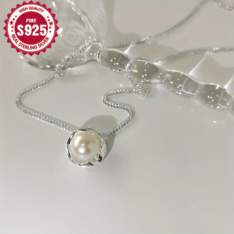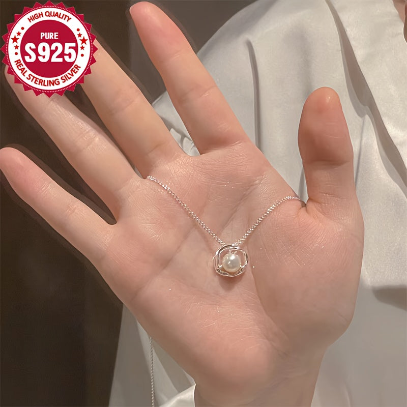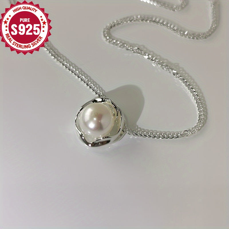 925 Sterling Silver Rose Pearl Pendant Necklace Hypoallergenic Chain