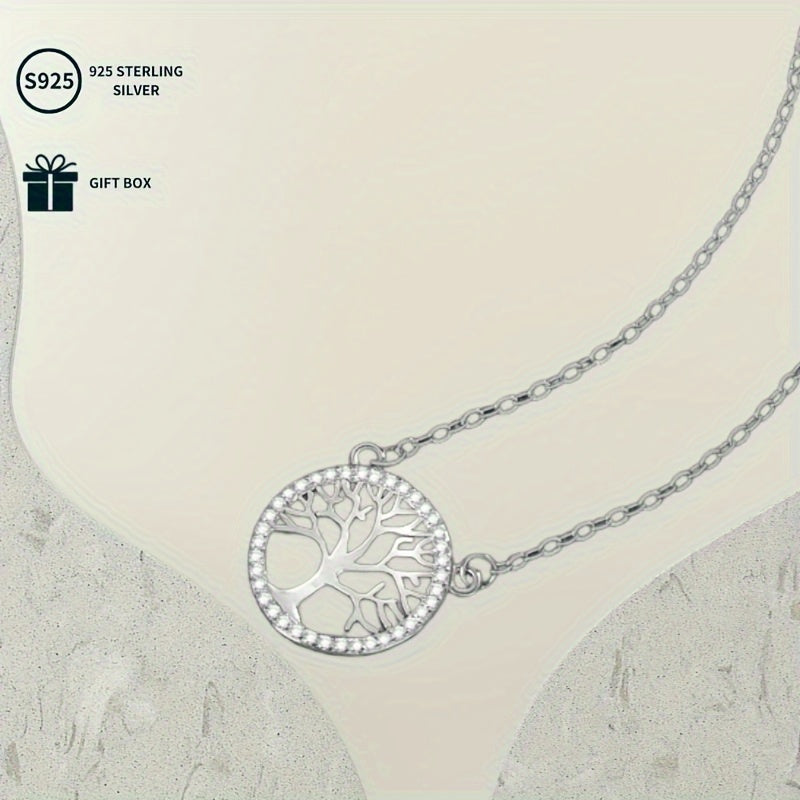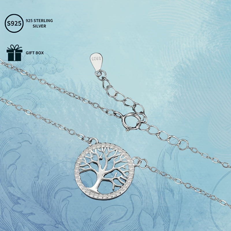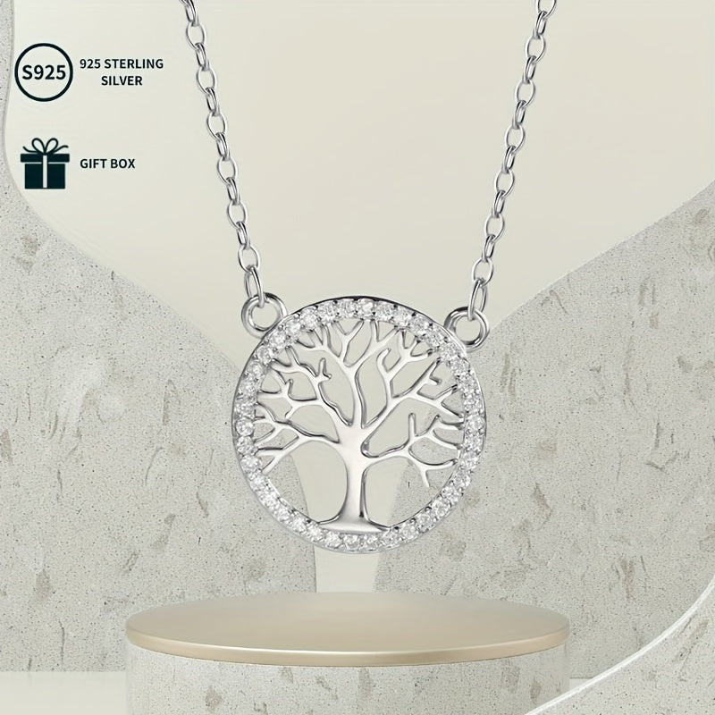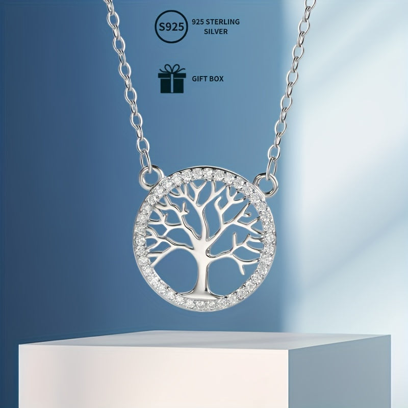 Add a touch of elegance with this beautiful Tree of Life pendant necklace. Made of 925 sterling silver with synthetic zirconia, this necklace is perfect for daily wear or as a Christmas gift.
