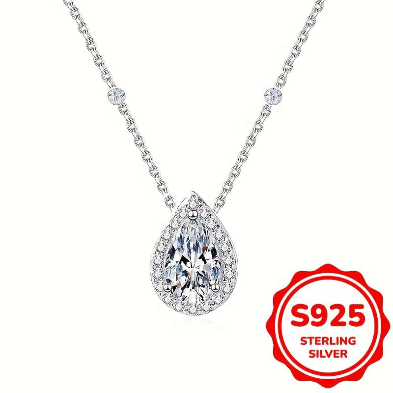 Add a touch of elegance with this sparkling pendant necklace. Crafted from 925 sterling silver, this necklace features a round water drop heart synthetic zirconia pendant that is perfect for weddings, engagements, or daily wear.