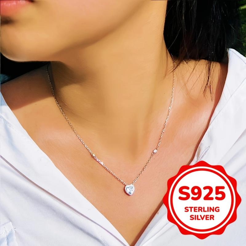 925 Sterling Silver Water Drop Heart Zirconia Pendant Necklace