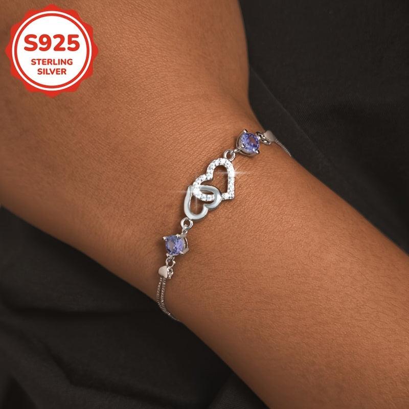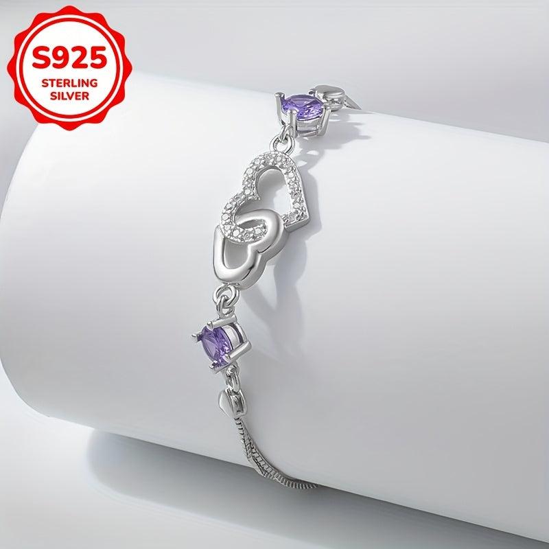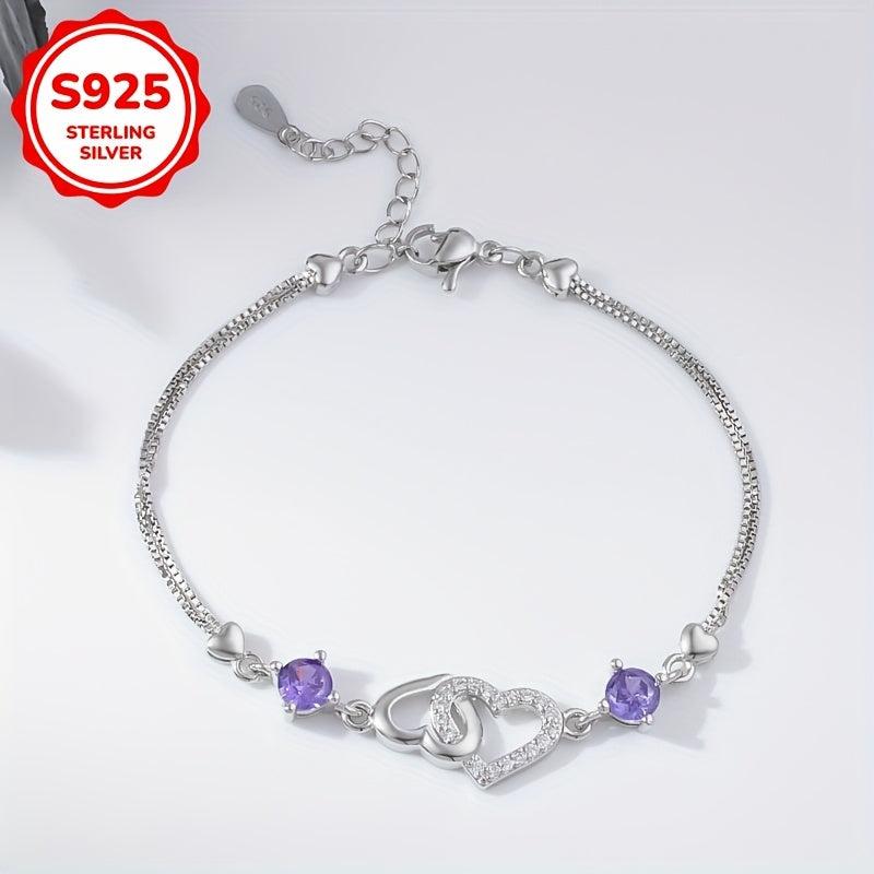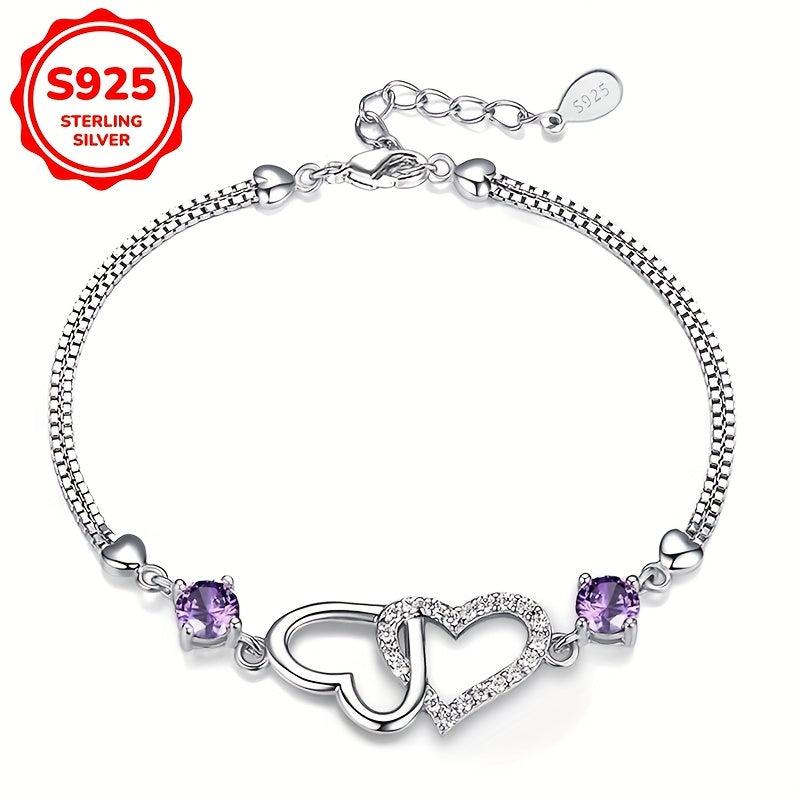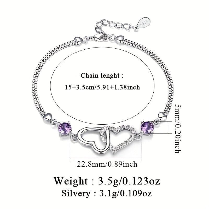 This double heart bracelet is made of 925 sterling silver with synthetic cubic zirconia. It weighs only 3.1g, making it perfect for daily wear, parties, and gift-giving on special occasions.