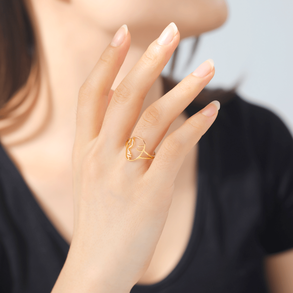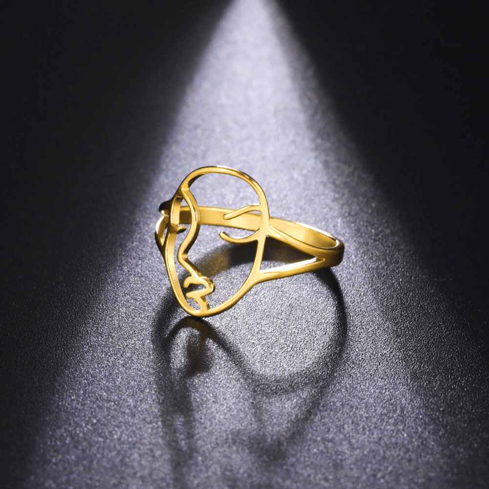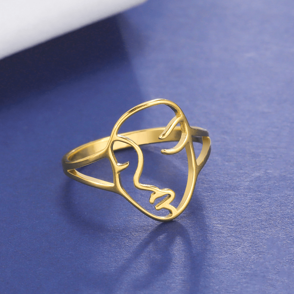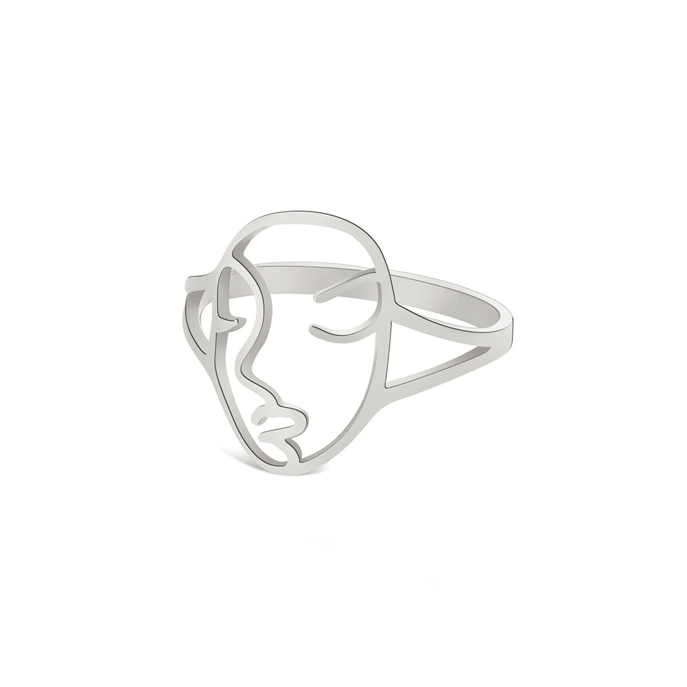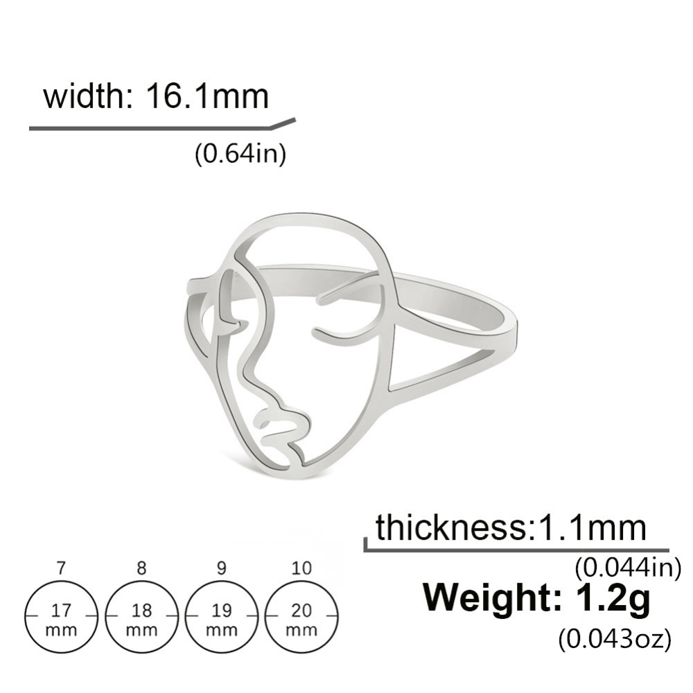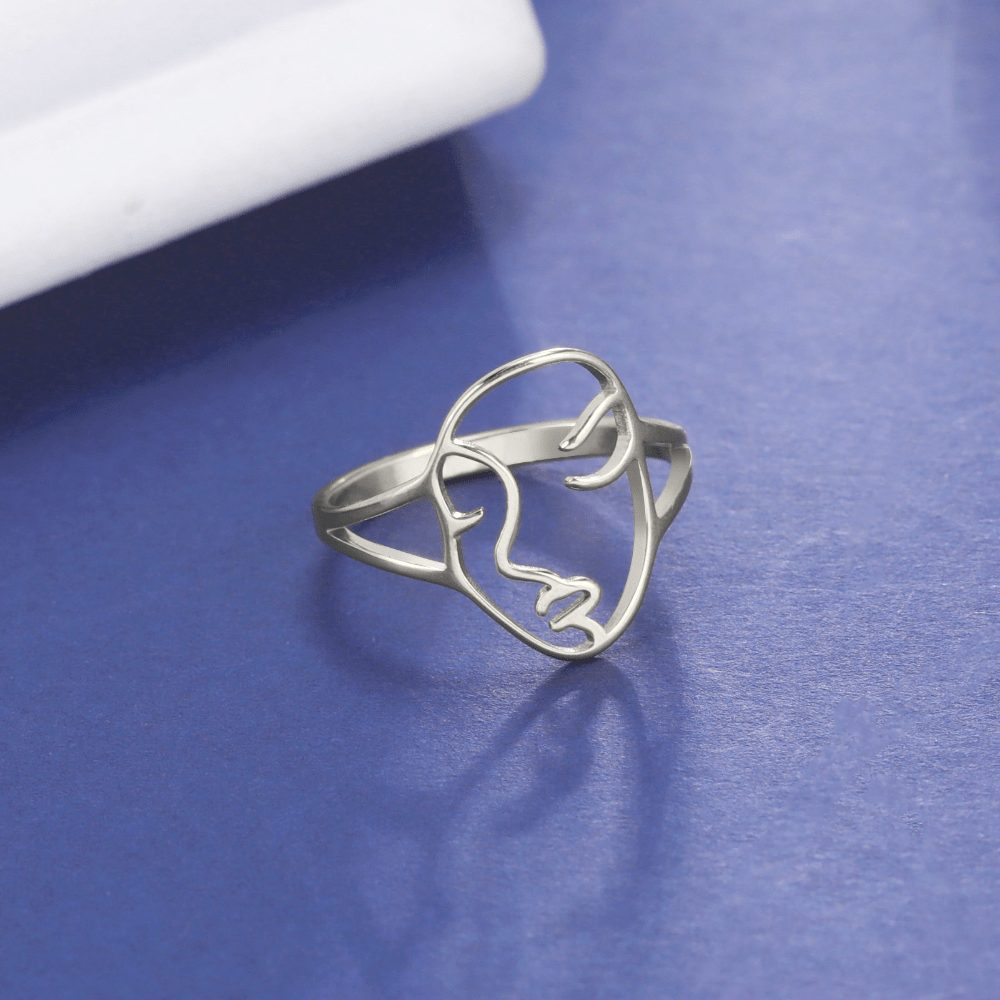 Unique stainless steel ring featuring an abstract human face design. Perfect as a Valentine's gift or for any occasion.