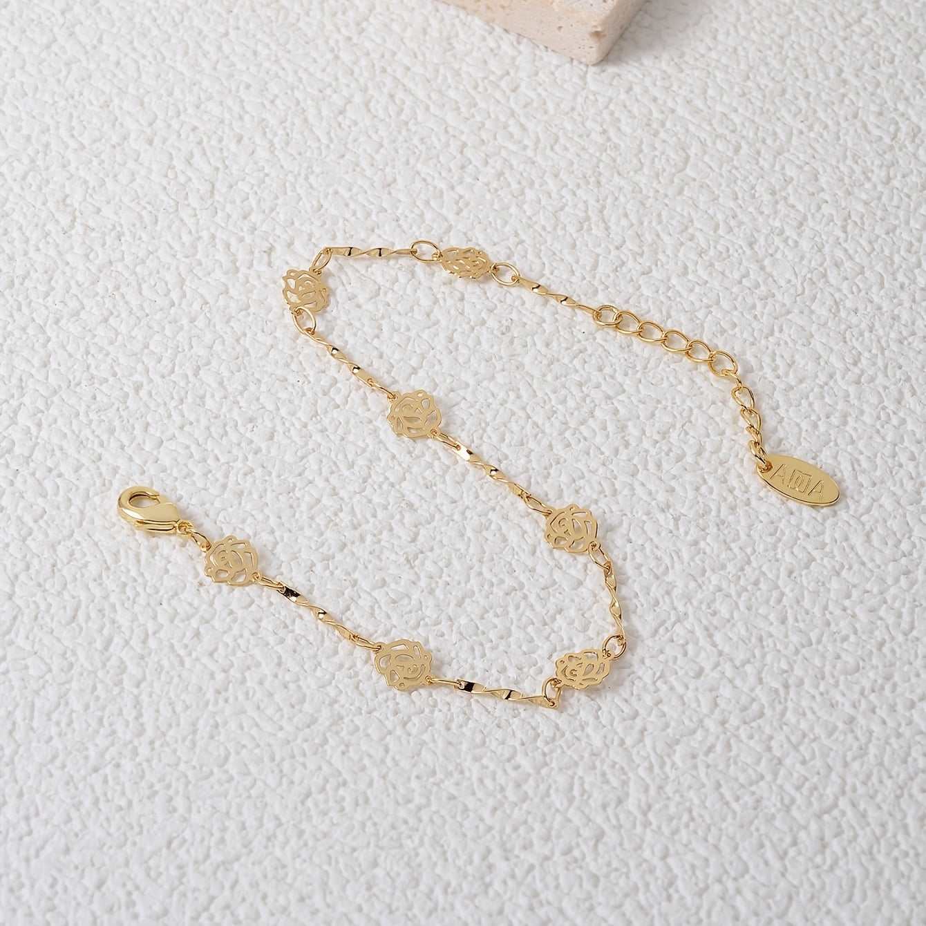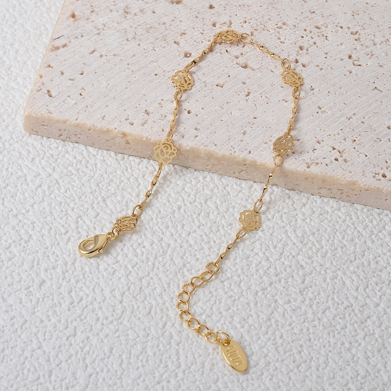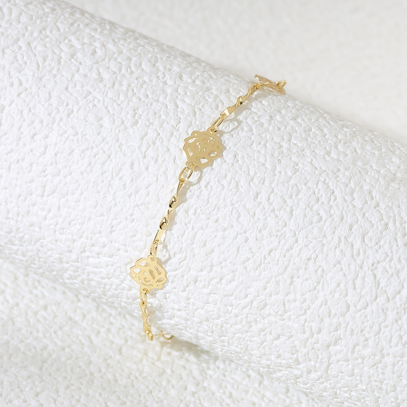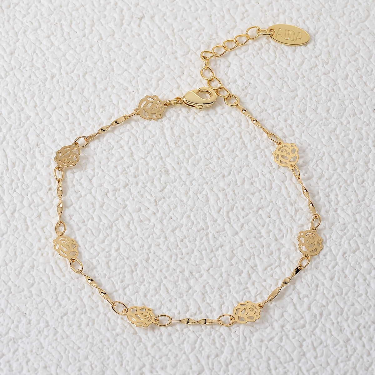 Enhance your style with this beautiful hollow rose flower chain bracelet made of 18K plated copper. This hand chain is adjustable to fit your wrist perfectly.