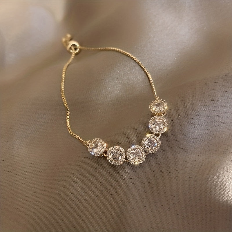 Elegant and versatile bracelet featuring inlaid zircon stones on a beaded chain. Adjustable length for a perfect fit.