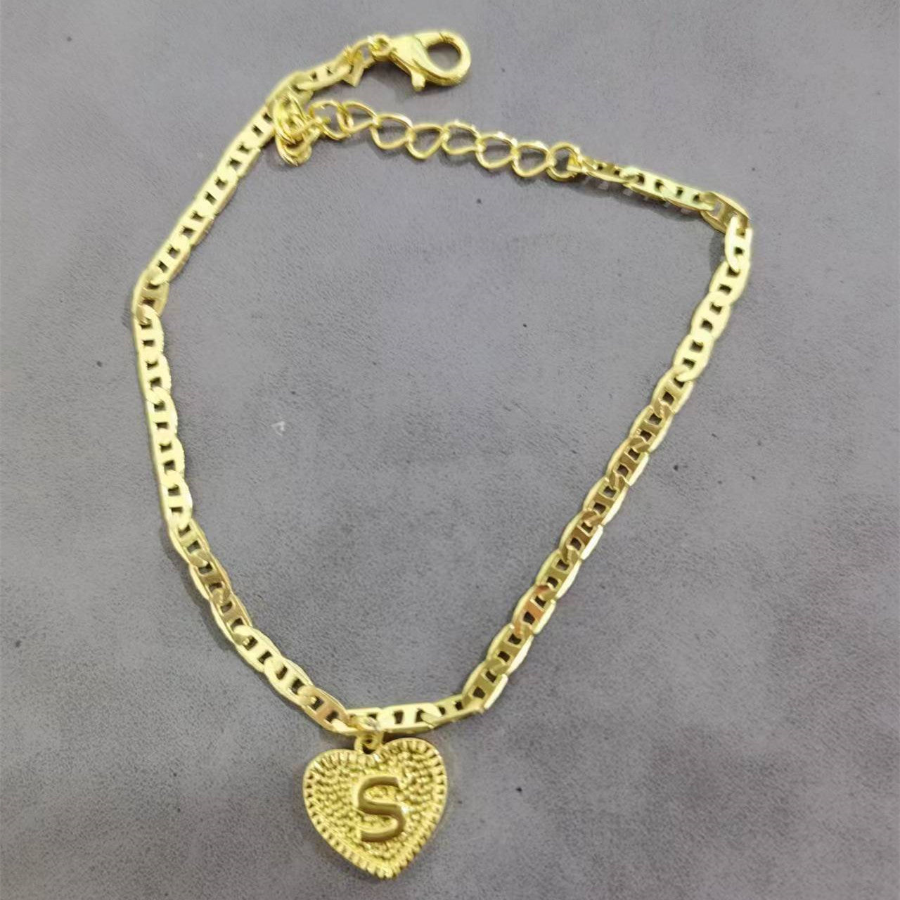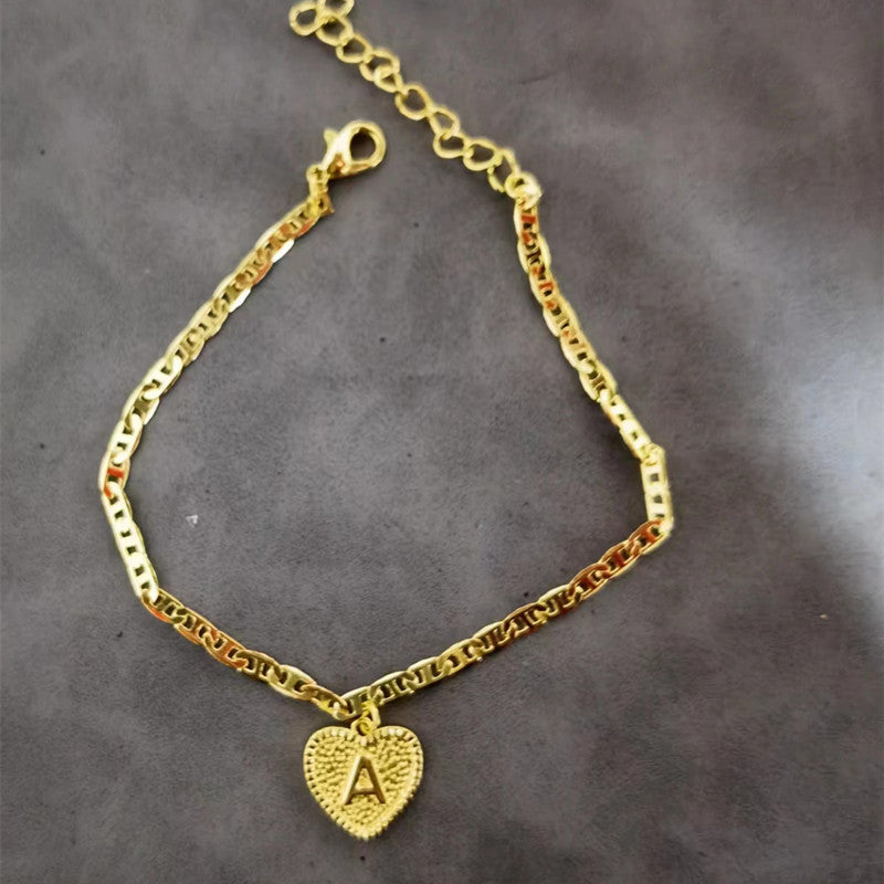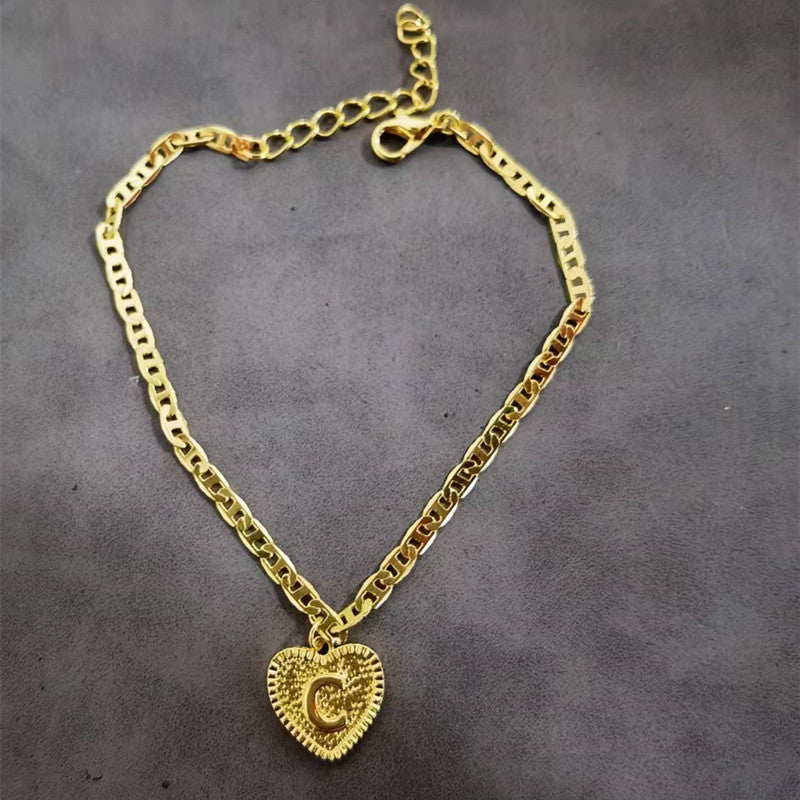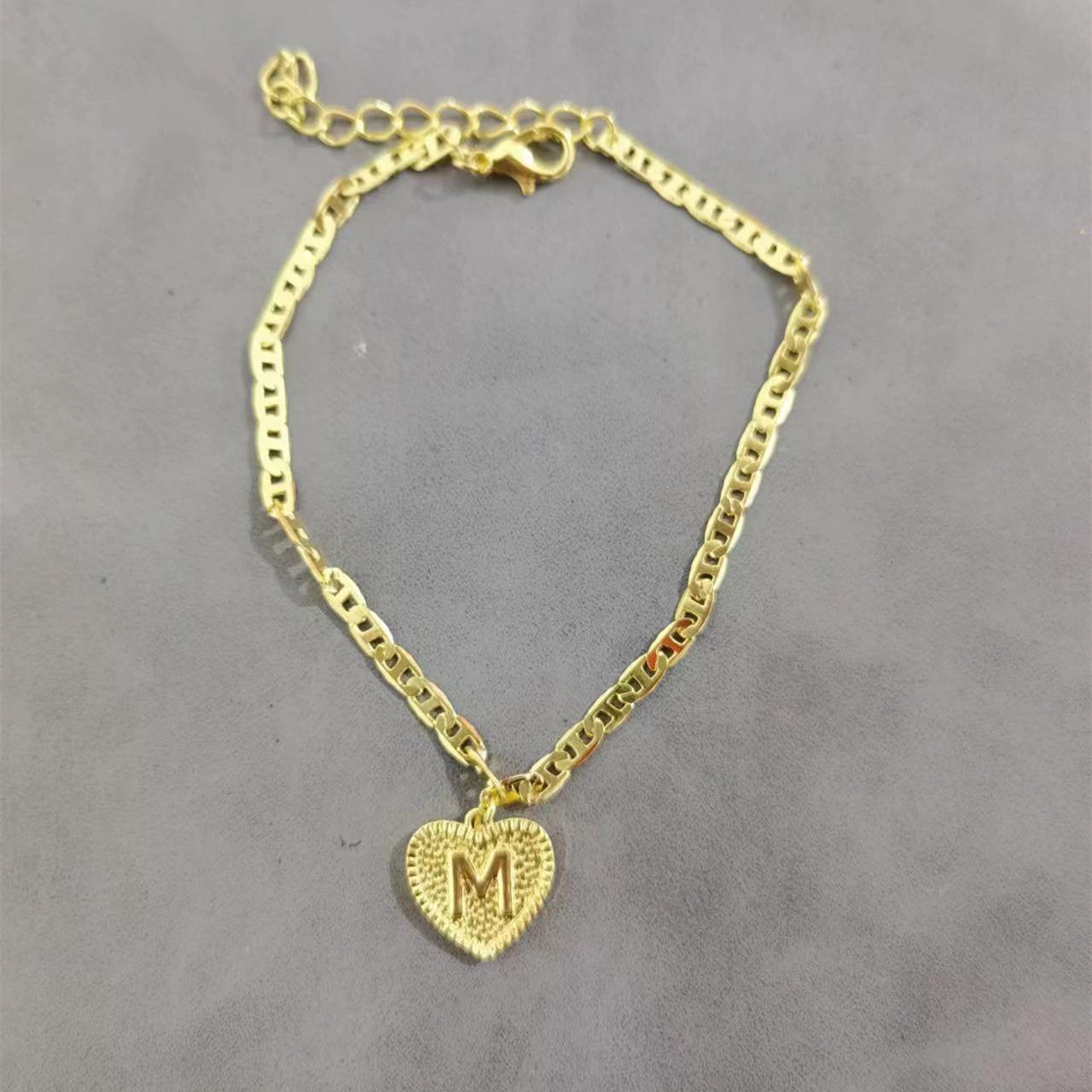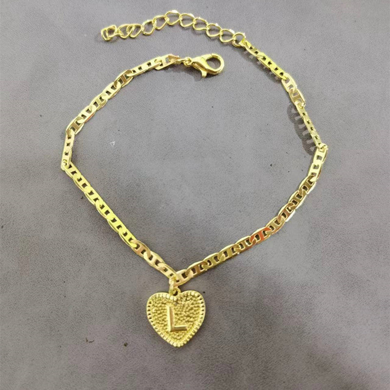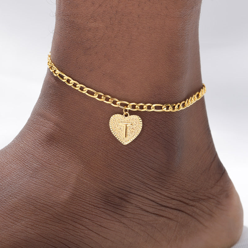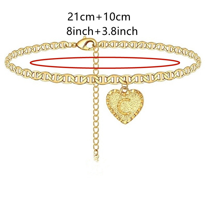 This adjustable personality anklet features heart and letter shape patterns crafted from 14K plated copper chain, ideal for enhancing your ankle's style.