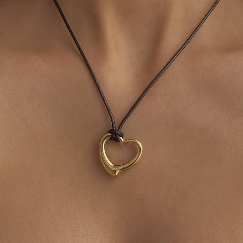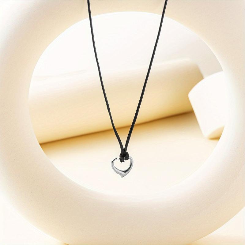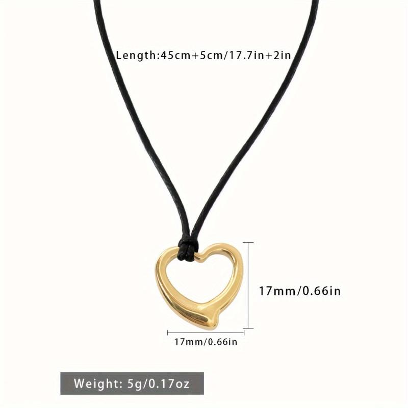This stainless steel heart necklace is a perfect addition to any outfit, featuring an adjustable cord chain for a customizable fit.