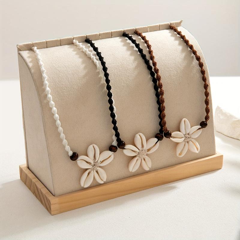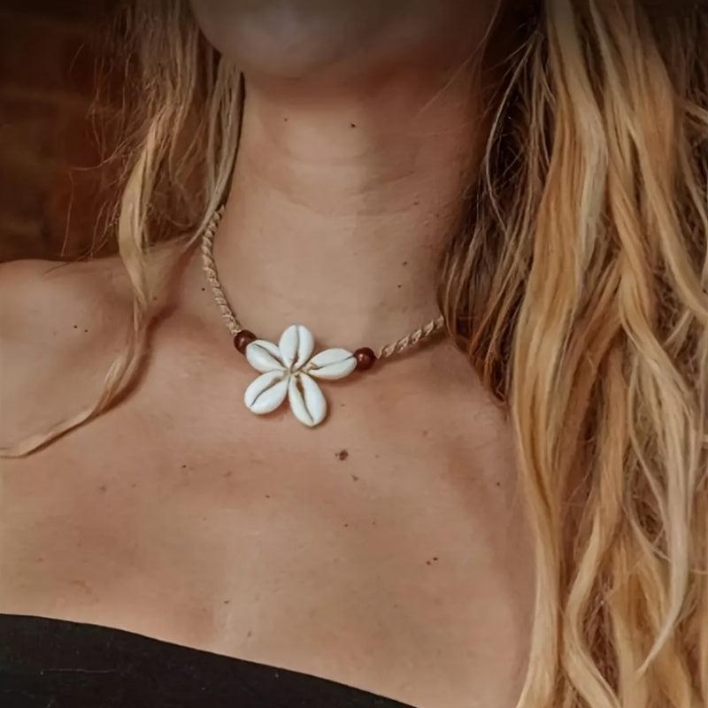 This necklace features a synthetic fiber rope with a shell flower pendant, perfect for adding a touch of beach vacation style to your daily outfits. It is a great accessory for women and also makes a lovely gift for special occasions.