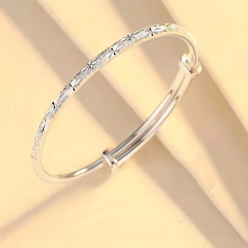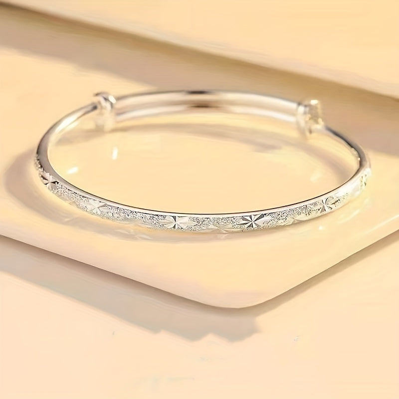 This adjustable bangle bracelet features a beautiful star shape pattern. It is made of copper and is perfect for adding a touch of elegance to your outfit.
