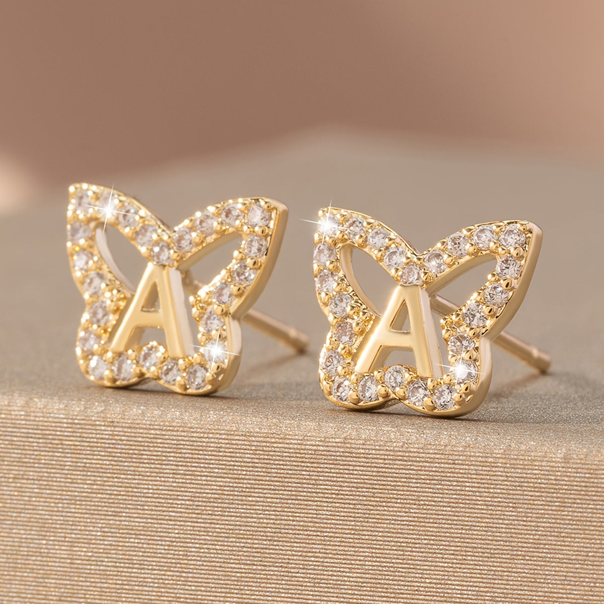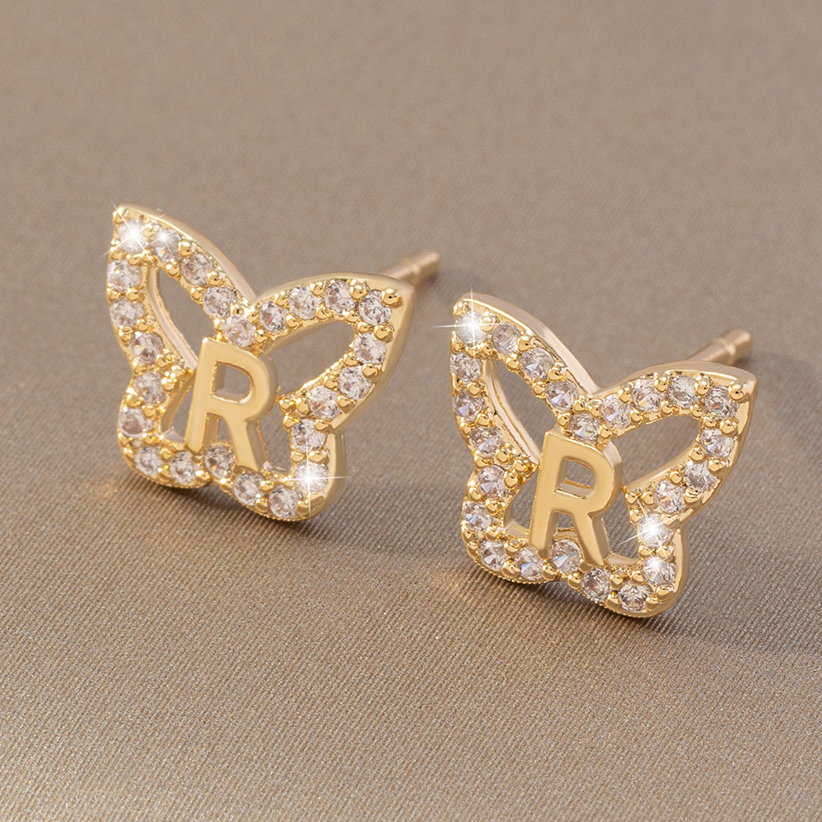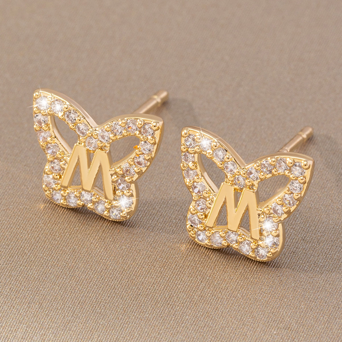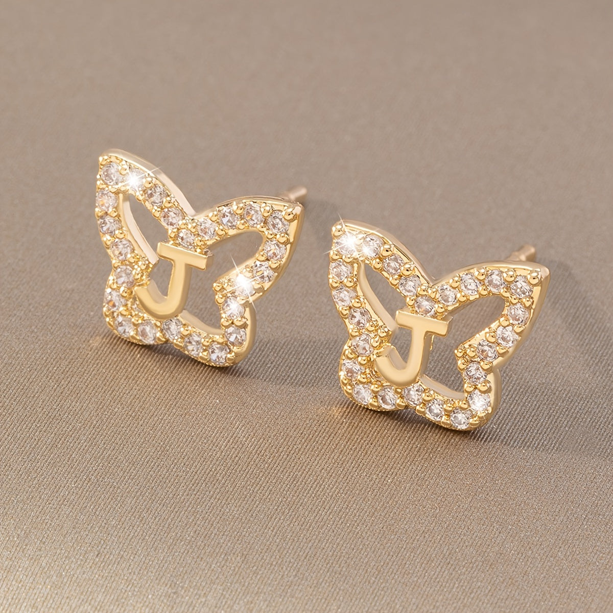 Add a touch of elegance with these initial letter butterfly stud earrings, perfect for women and girls on their special day.