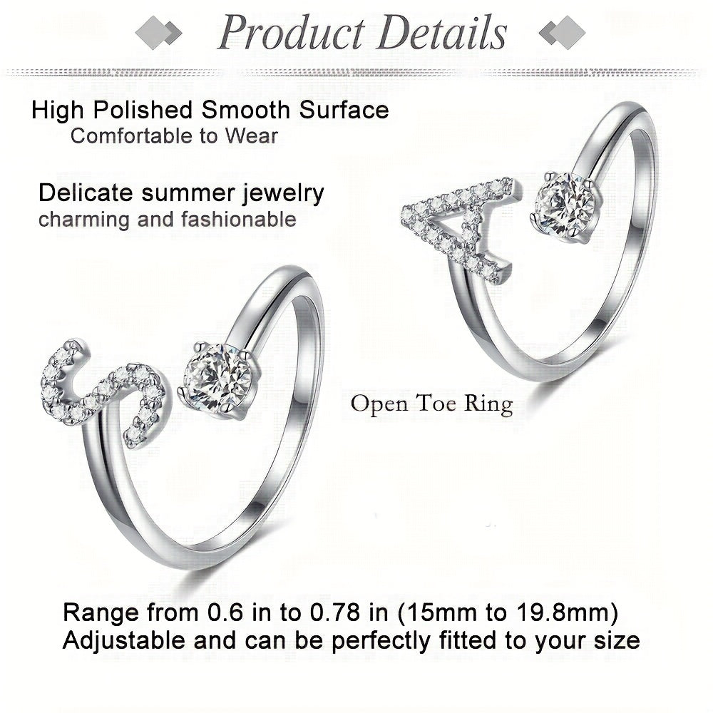 Add a touch of sparkle to your toes with this alphabet letter adjustable toe ring. The inlaid rhinestones make it perfect for summer beach days.