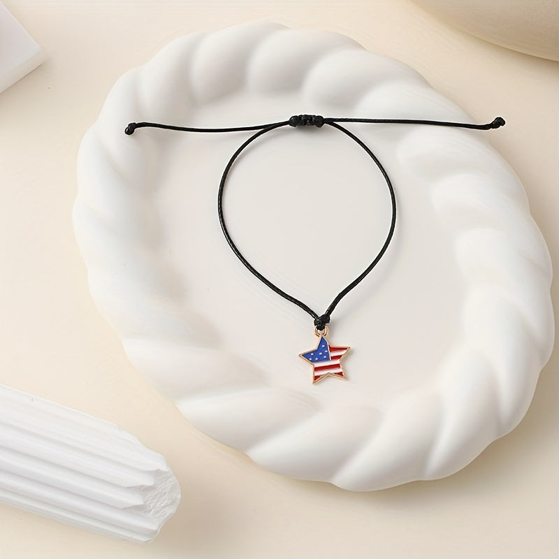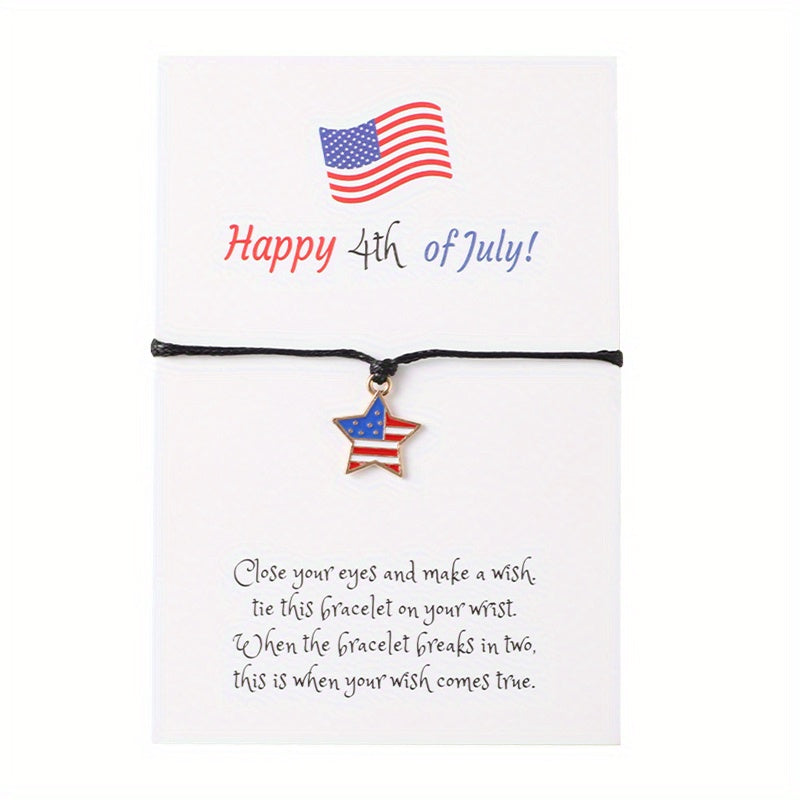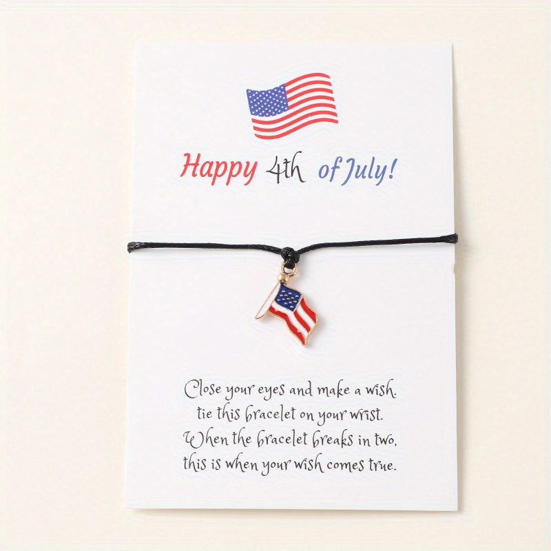 Show your patriotic spirit with this minimalist style braided bracelet featuring the American flag design. Perfect hand decoration for Independence Day celebrations.