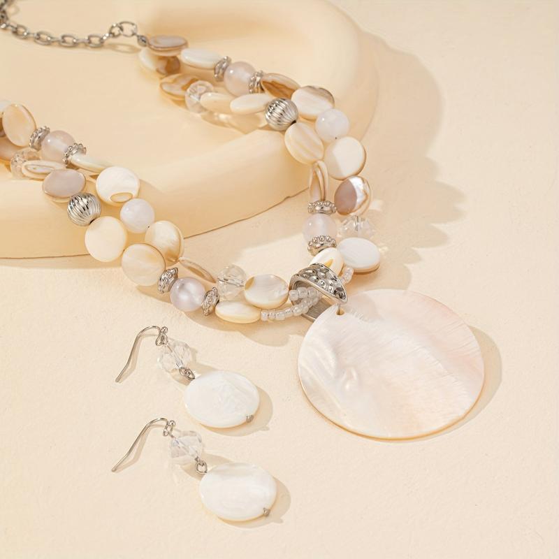 This elegant set features a double layer beaded necklace and earrings, perfect for holidays, birthdays, dates, banquets, weddings, parties, and shopping.