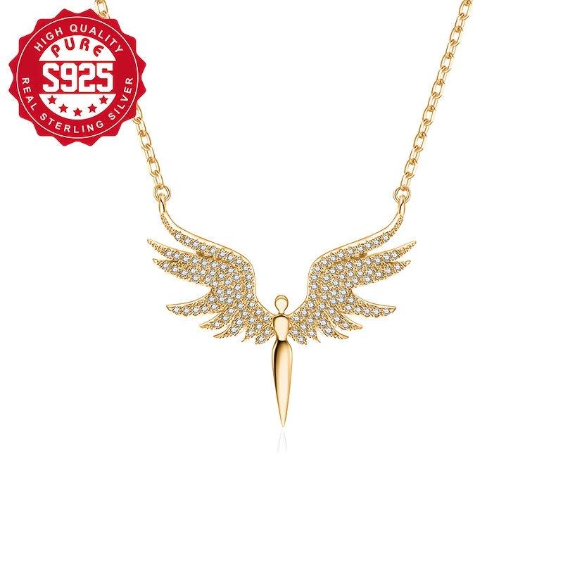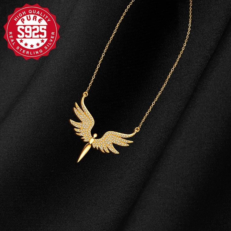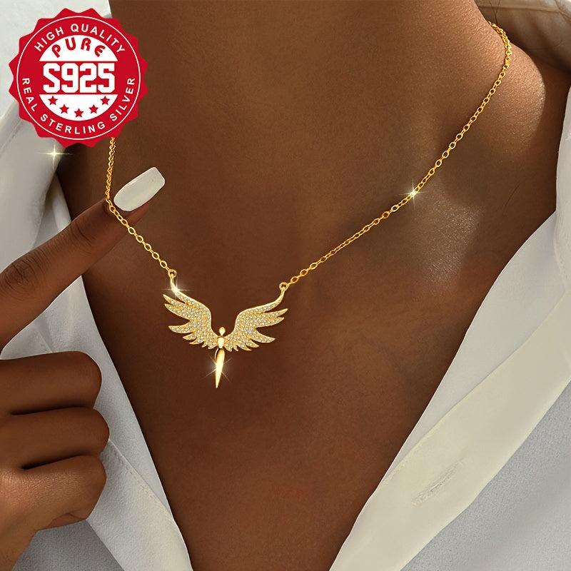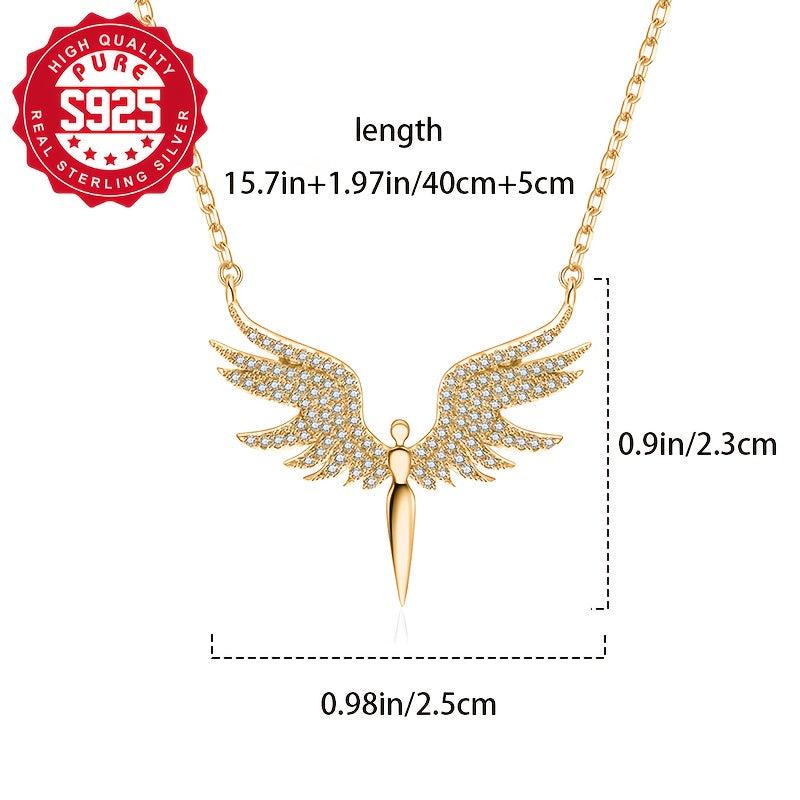 Add a touch of elegance to your outfit with this S925 silver angel wing necklace set featuring synthetic zirconia. Perfect for daily wear and versatile enough for parties.