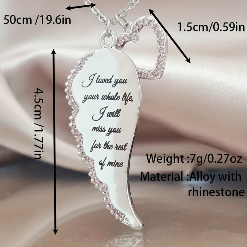 This beautiful pendant necklace features angel wings and a love design inlaid with rhinestones, making it a perfect accessory for women and girls. Ideal for birthdays or special occasions.