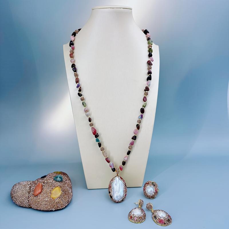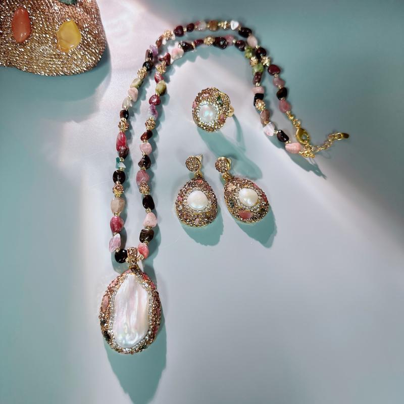 Exquisite earrings featuring natural apatite and freshwater baroque pearls. Perfect for evening events, business meetings, and parties.