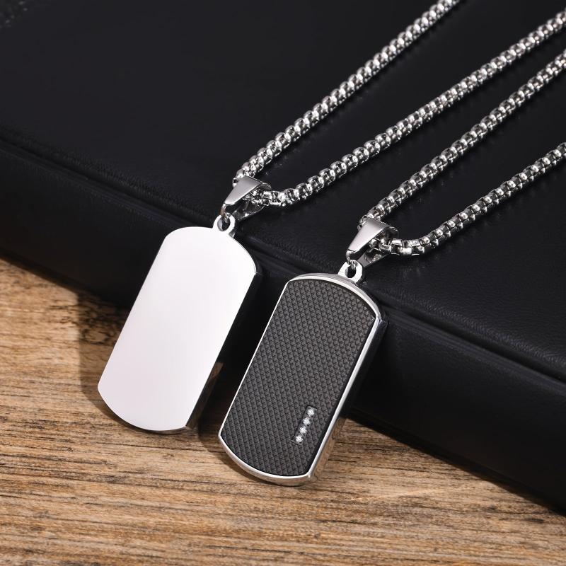 A classic pendant necklace featuring an Argyle design with a tag, ideal gift for boyfriend, husband, or father. Made of durable hypoallergenic stainless steel.
