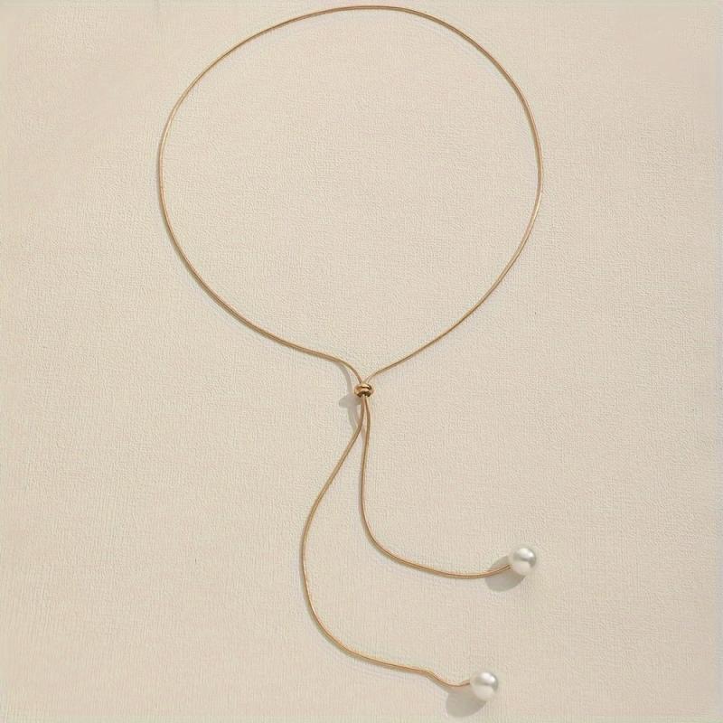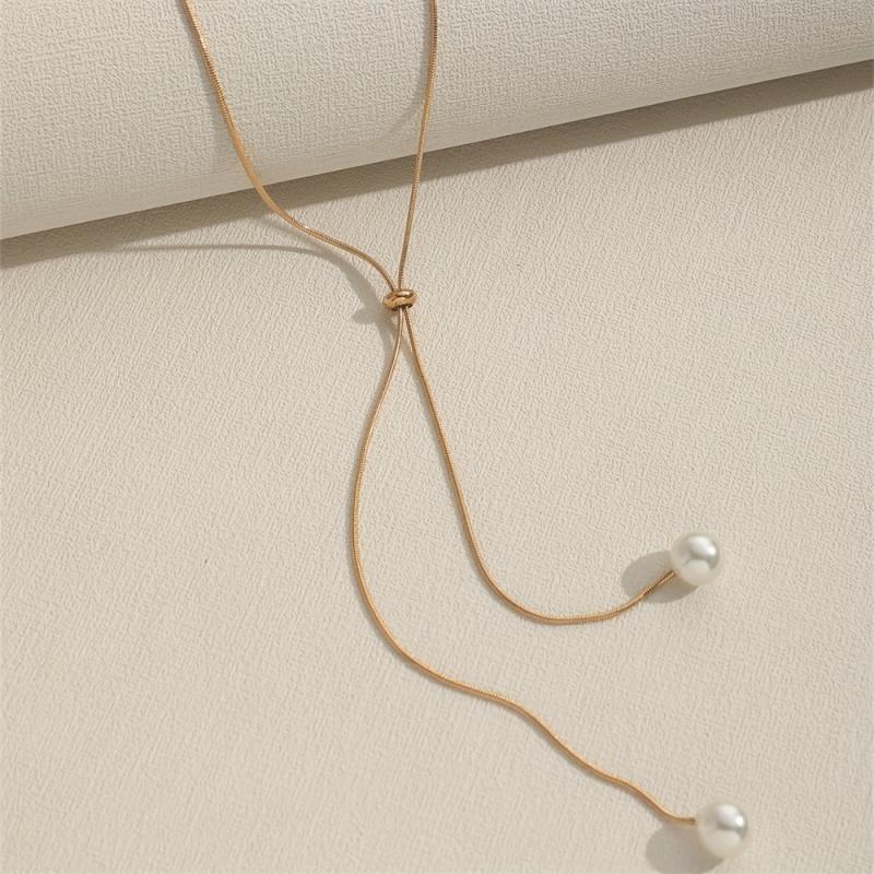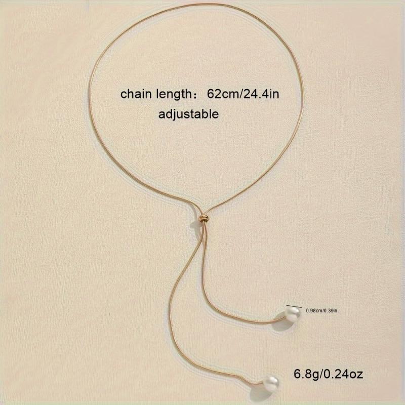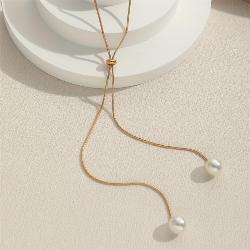 Elegant and adjustable long necklace featuring a beautiful artificial pearl pendant, perfect for women's fashion.