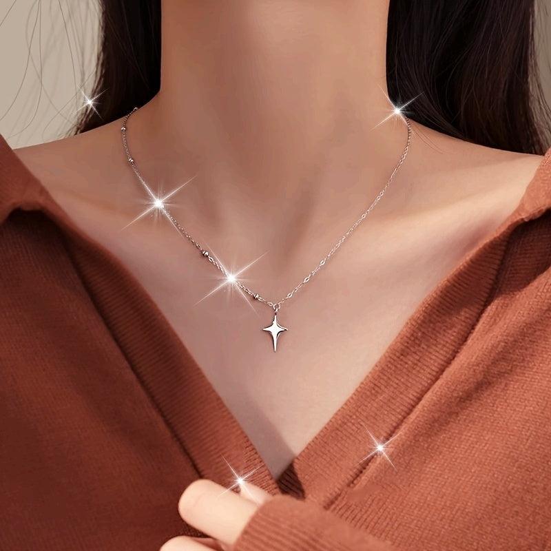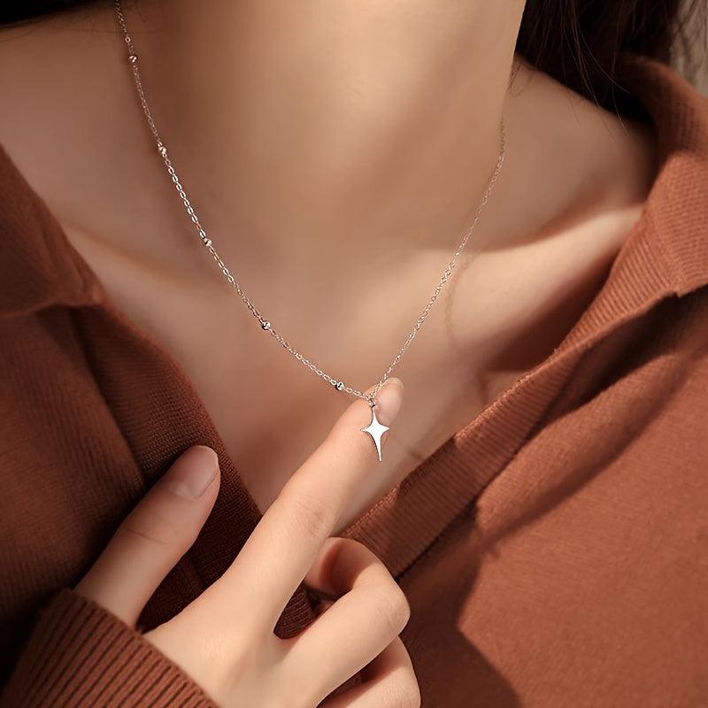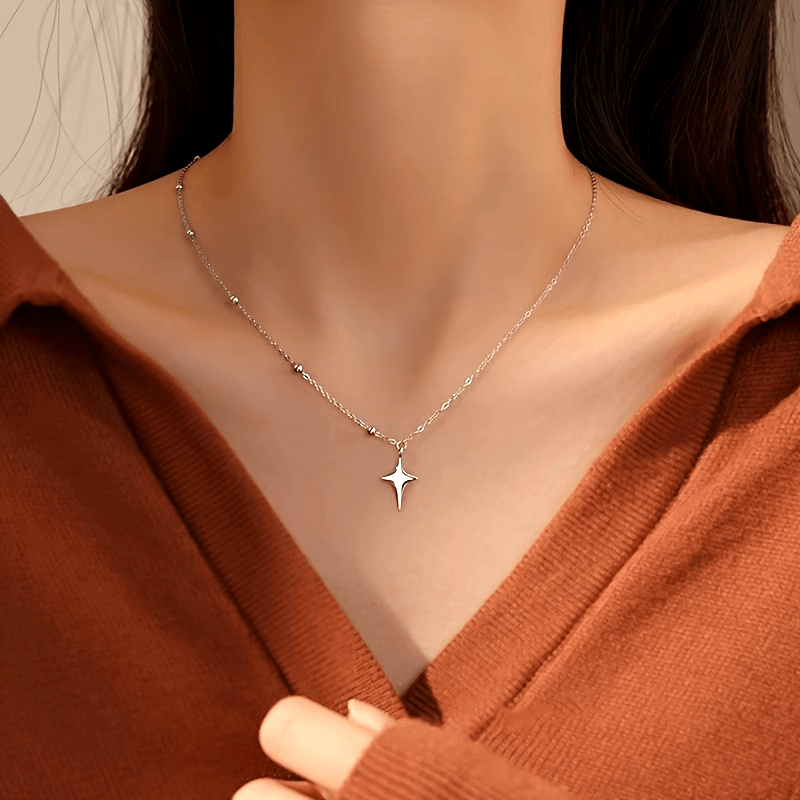 This versatile necklace features a four-pointed star pendant on a unique asymmetrical chain, adding a touch of niche sense to any outfit.