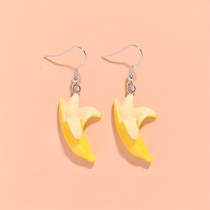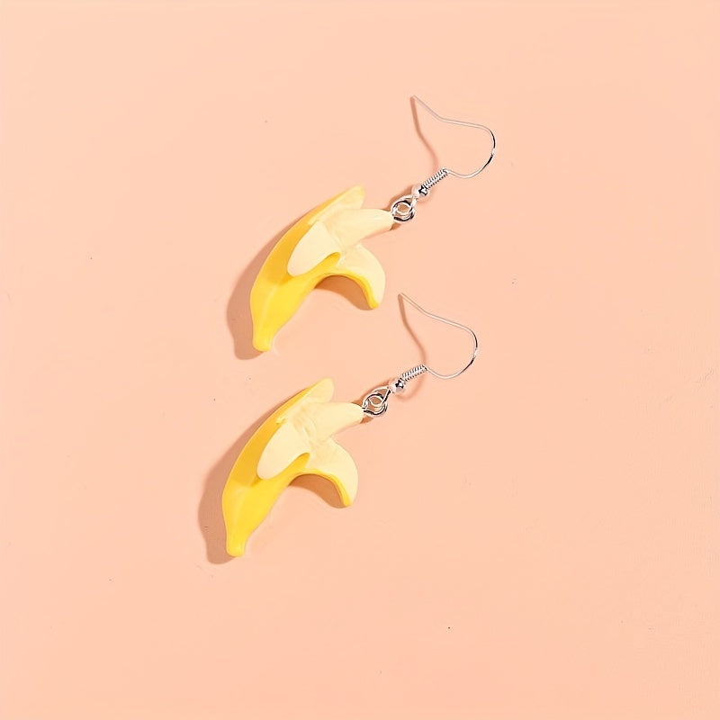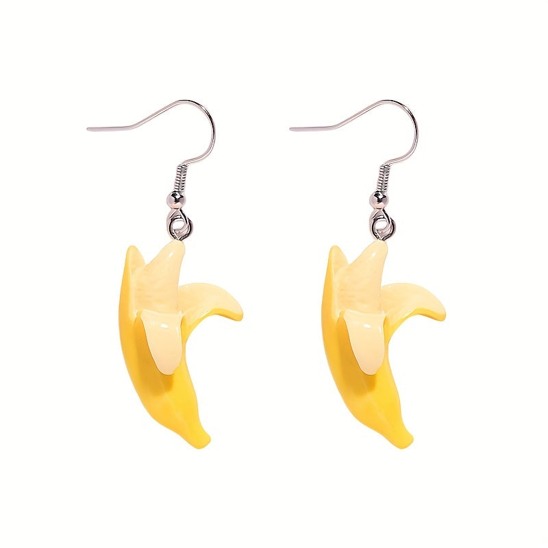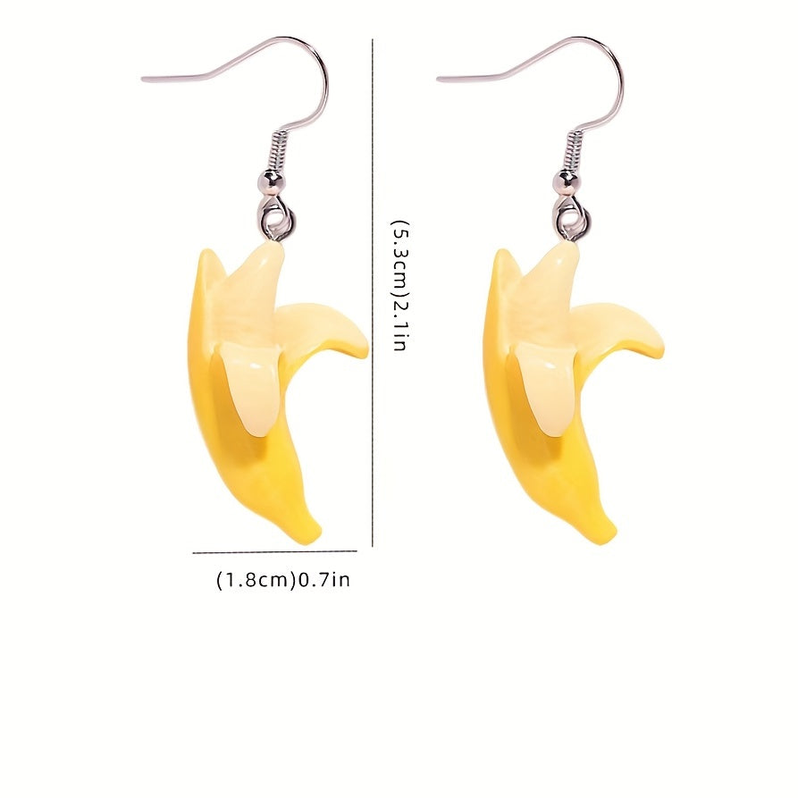 These lifelike earrings feature peeled banana designs made of resin, perfect for adding a touch of whimsy to your outfit.