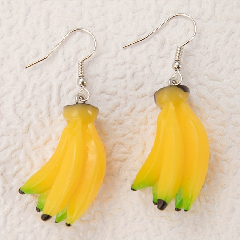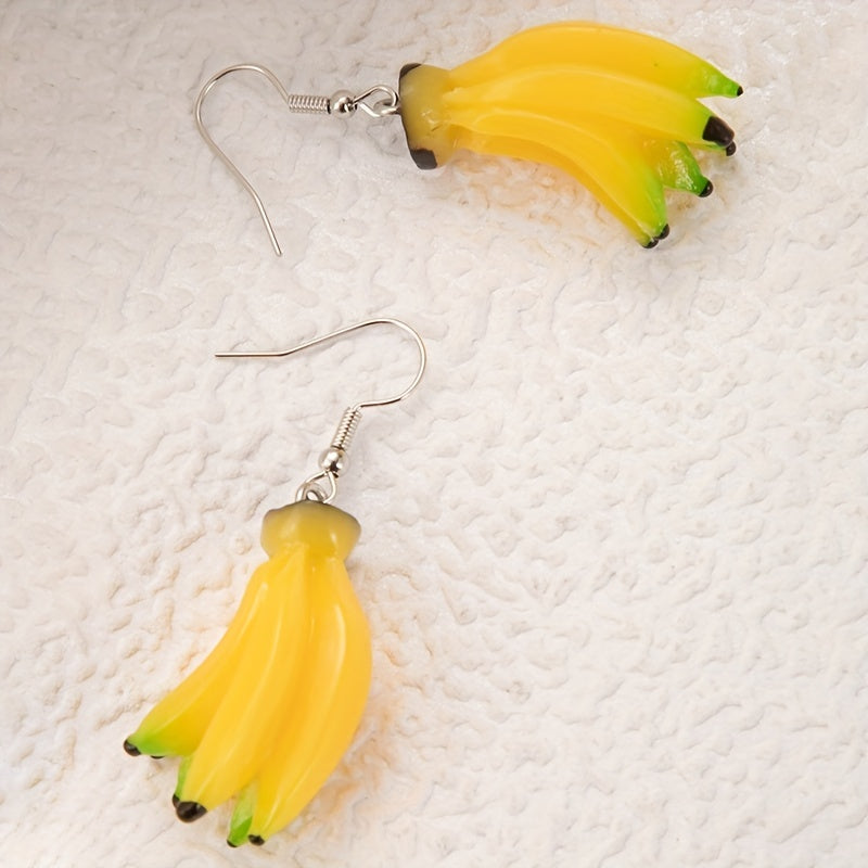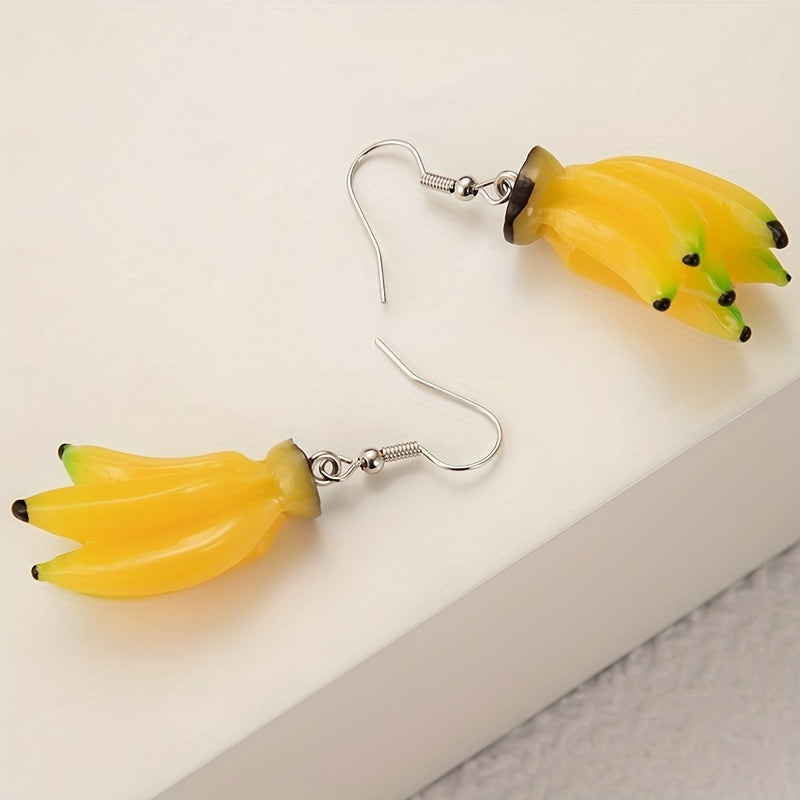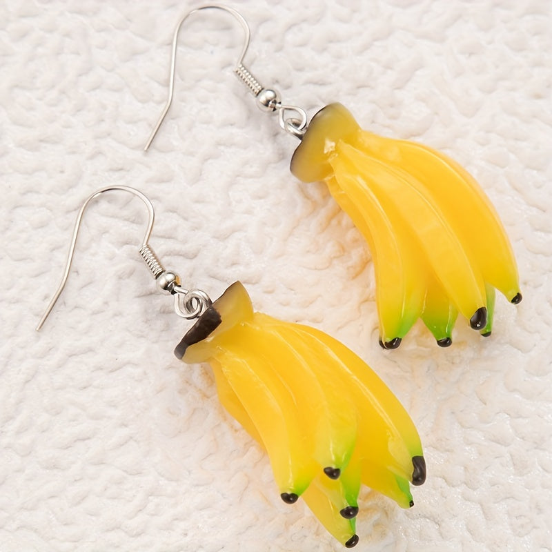 These cartoon banana hook dangle earrings are a creative and funny gift for women and girls. Made of alloy, these earrings are lightweight and comfortable to wear.