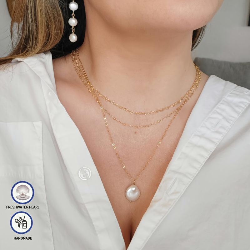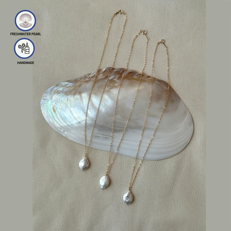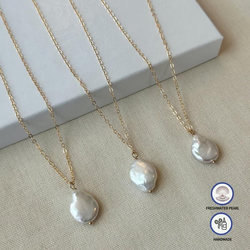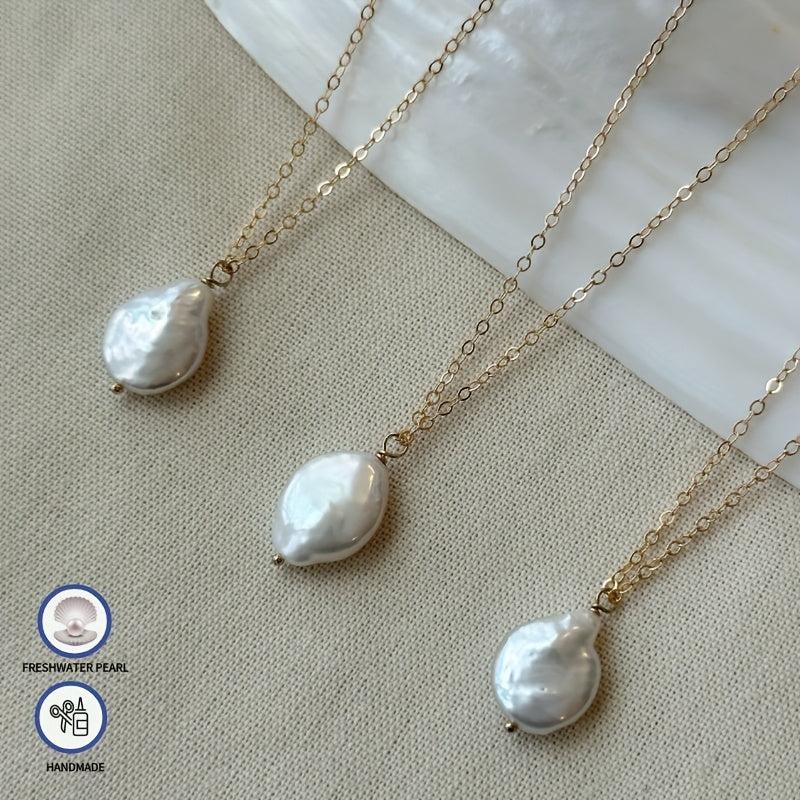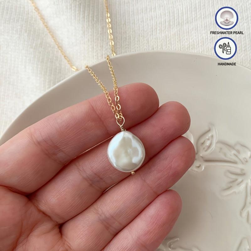 18K gold plated necklace featuring a baroque coin pearl. Embrace the vintage boho style with this elegant freshwater pearl necklace.