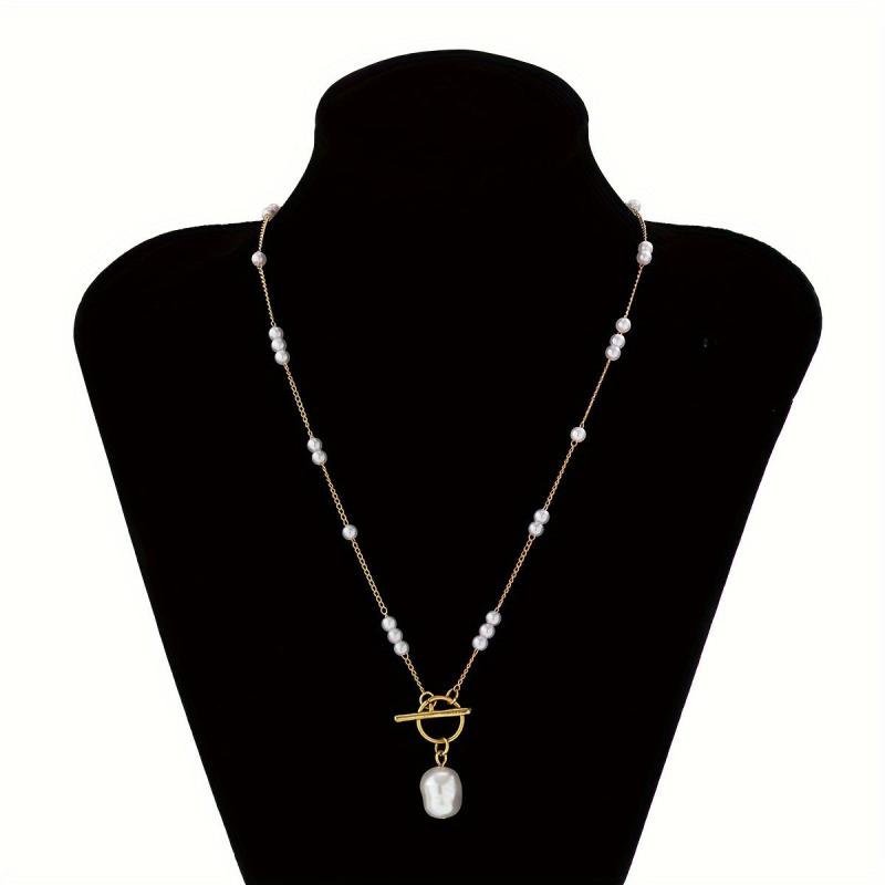 Elegant pendant necklace featuring a mix of faux pearls in a baroque style. Perfect for adding a touch of sophistication to any outfit.