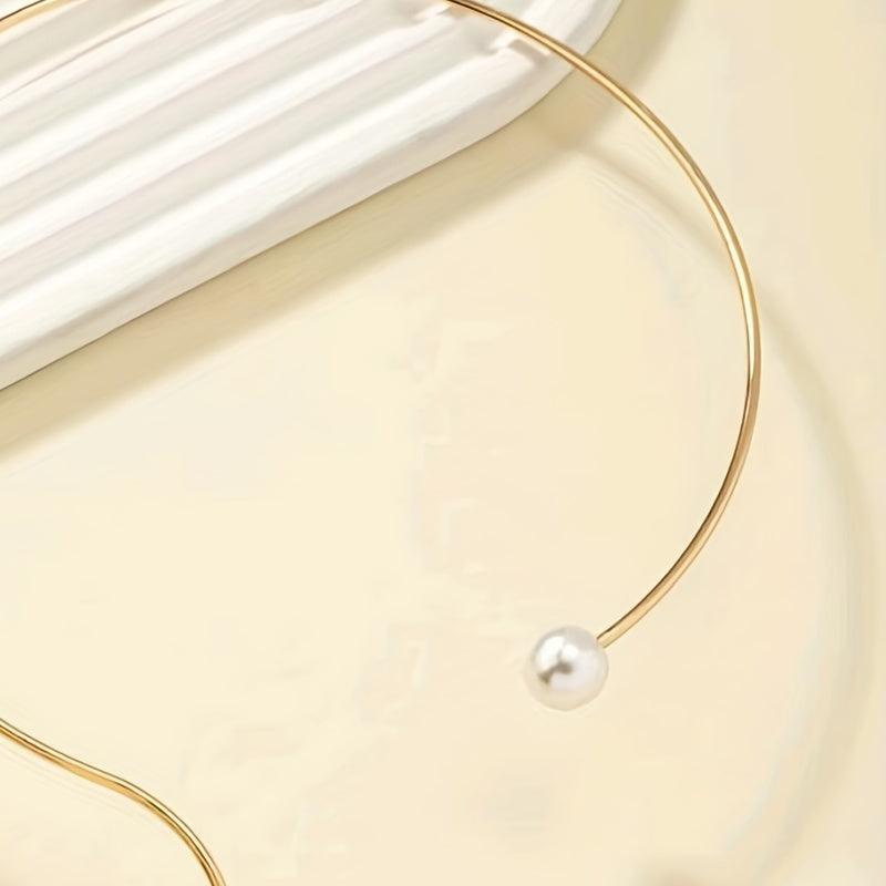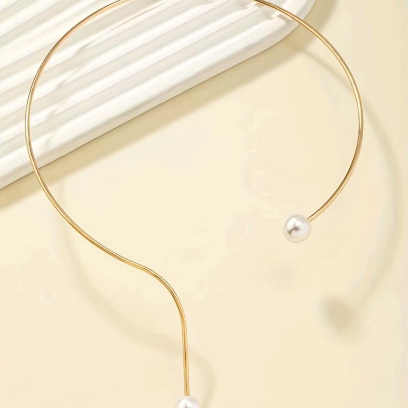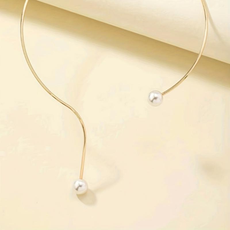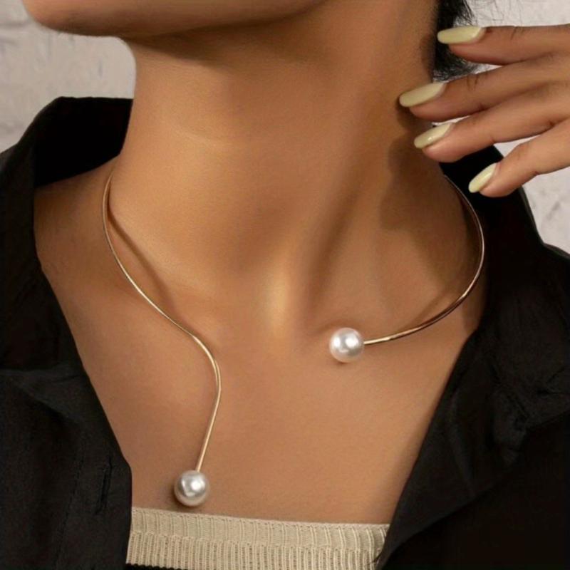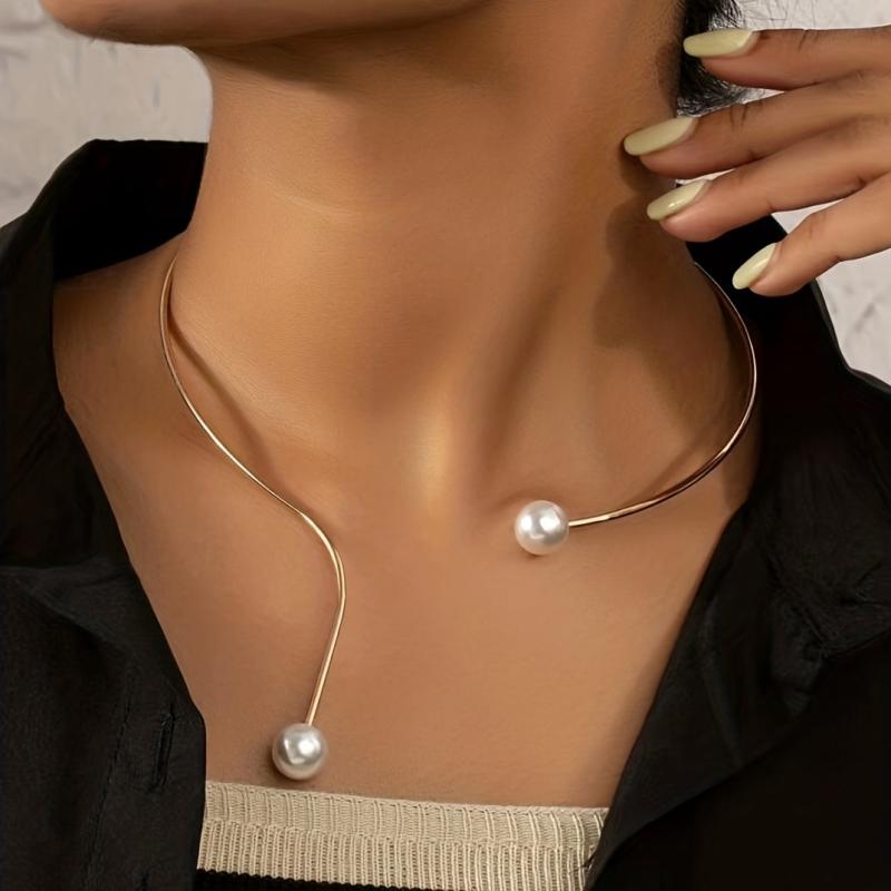 Elegant vintage-inspired short necklace with faux pearls in a stylish collar design.