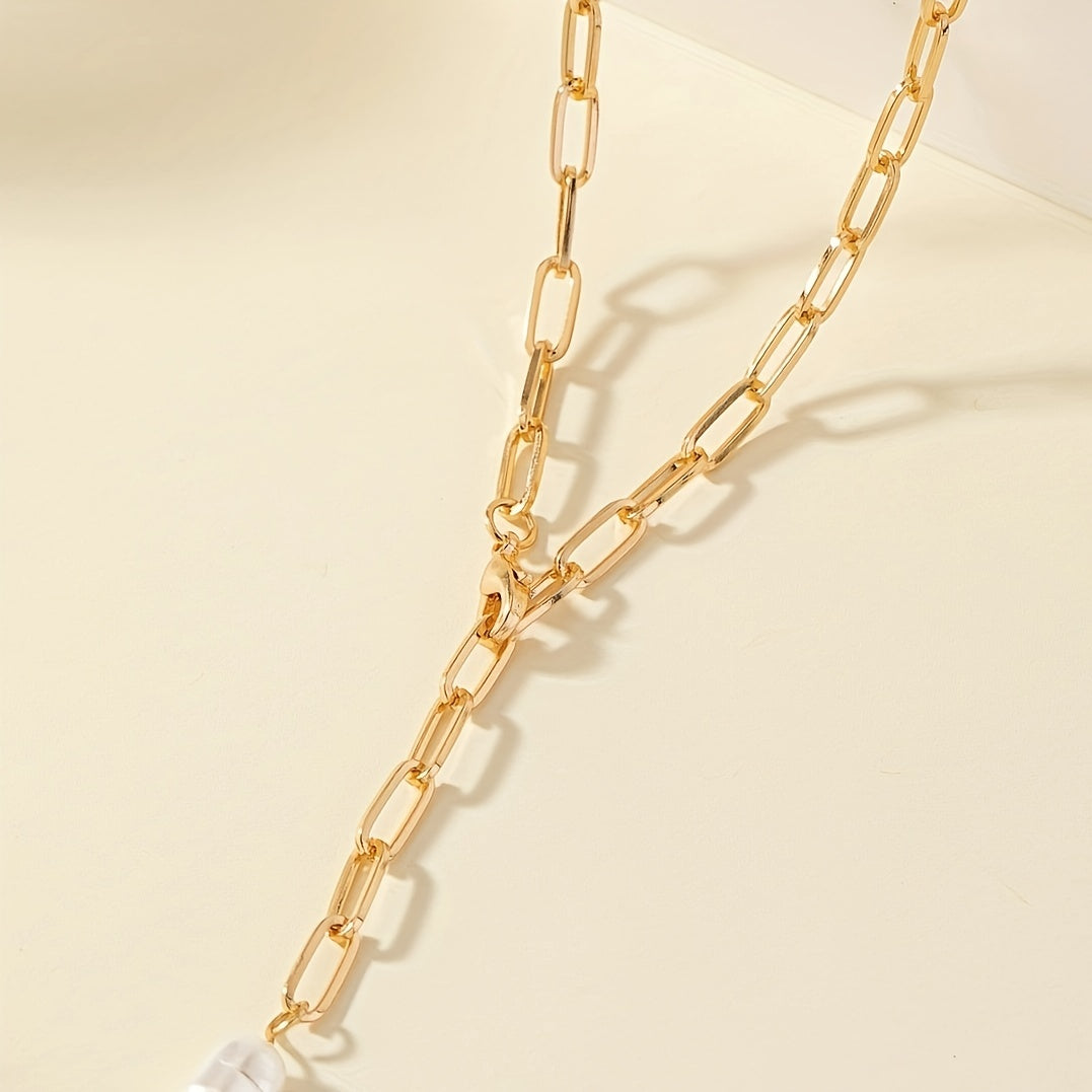 Elevate your beach look with this elegant Baroque style faux pearl collarbone chain. The adjustable charm adds a touch of glamour to your vacation outfit.
