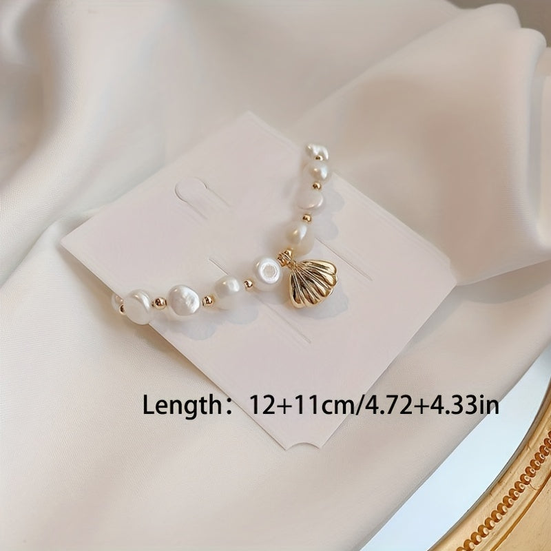 Elevate your beach look with this stunning Baroque Summer Shell Freshwater Pearl Bracelet. Perfect for a summer day out or a beach vacation.
