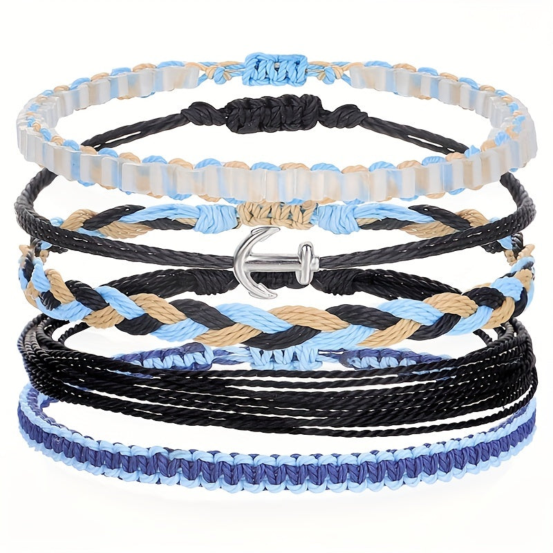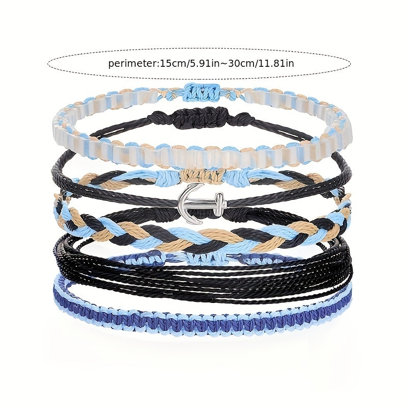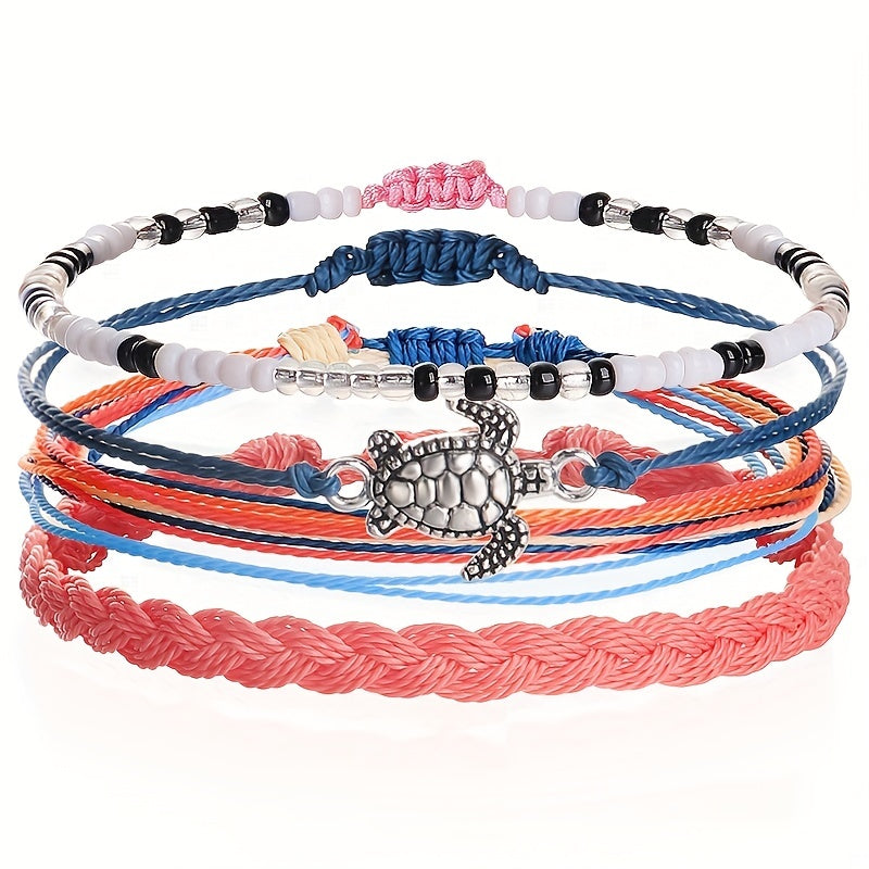This friendship bracelet set features beach-themed designs with a turtle, anchor, and crystal beads. Made with waterproof wax thread, these bracelets are perfect for everyday wear and outdoor activities.