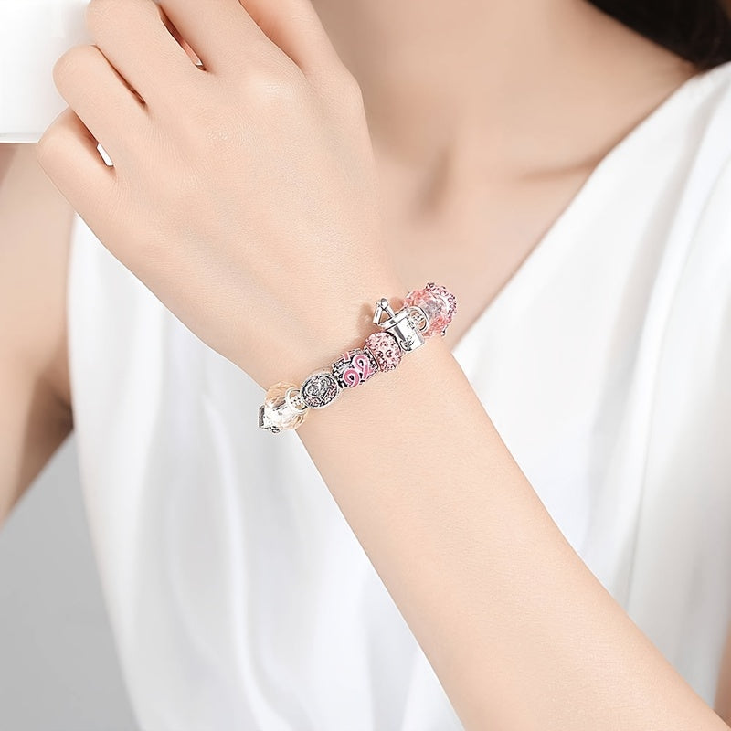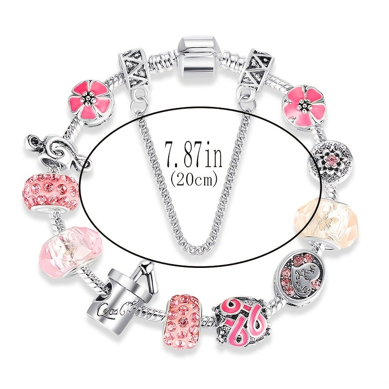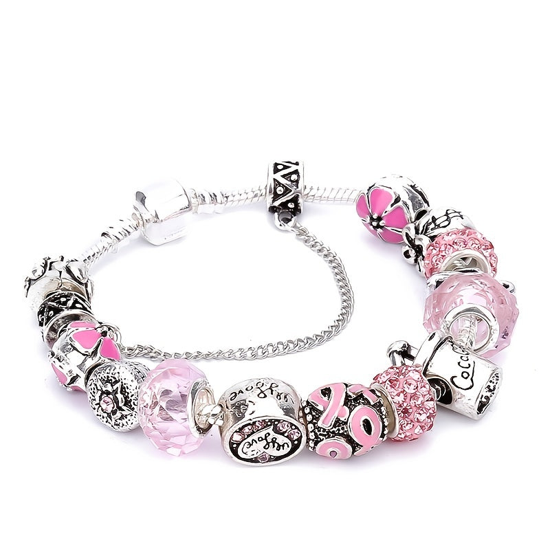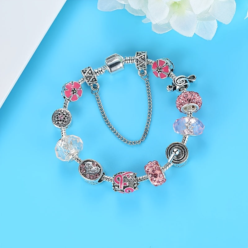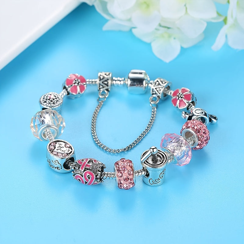 Alloy chain with flower and letters pendant link chain bracelet, adjustable for ladies daily clothing accessories and birthday present.