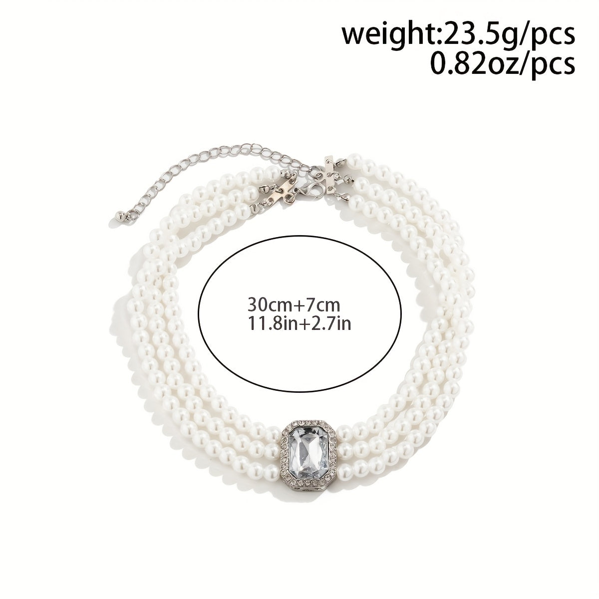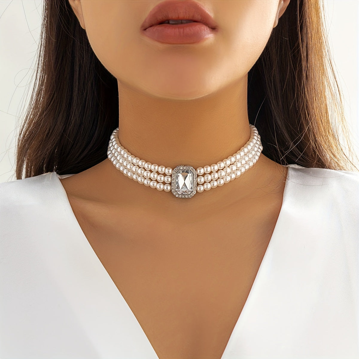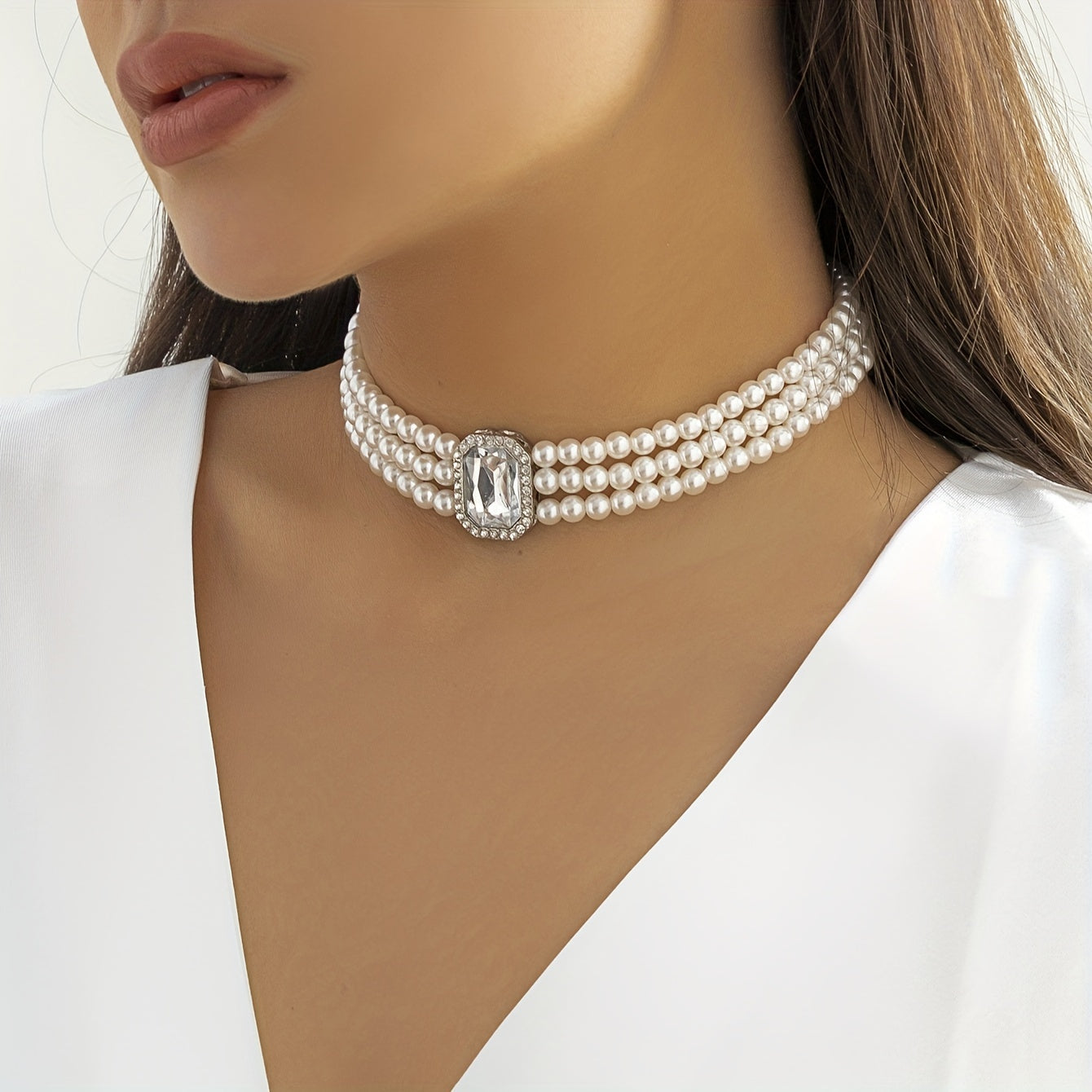 Add glamour to your party outfit with this multilayer choker necklace featuring faux gemstones and faux pearls. Perfect for special occasions.