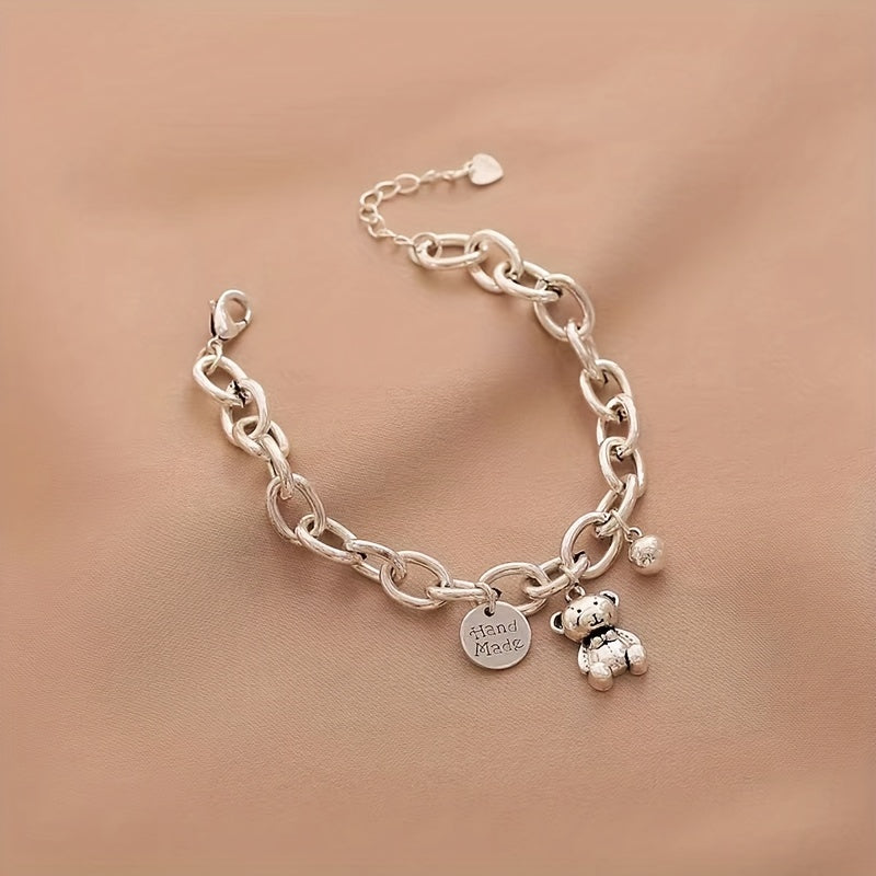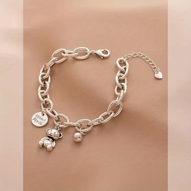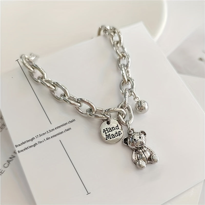 Show off your unique style with this bear cuban chain bracelet featuring a round pendant with a letter accent. Made of high-quality alloy, this jewelry piece is perfect for adding a touch of personality to your outfit.