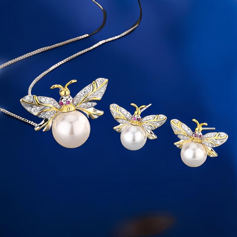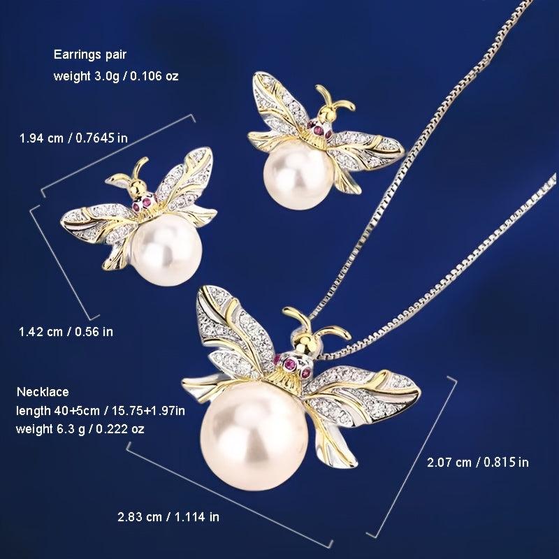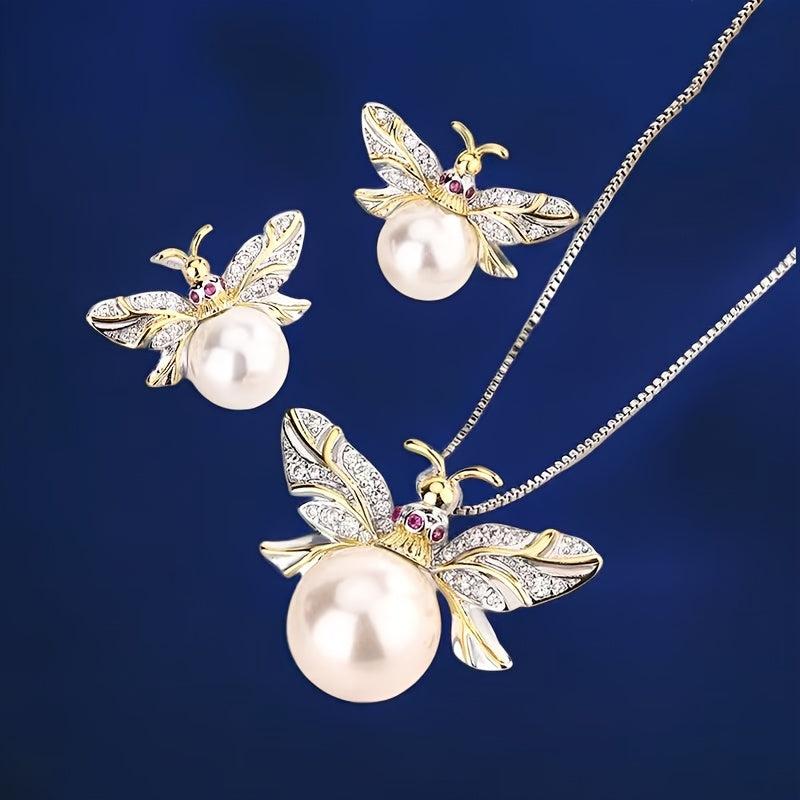 This bee shape earrings pendant necklace features artificial pearls that add a touch of elegance. Perfect for Valentine's, Mother's Day, or graduation gifts. Suitable for daily wear.