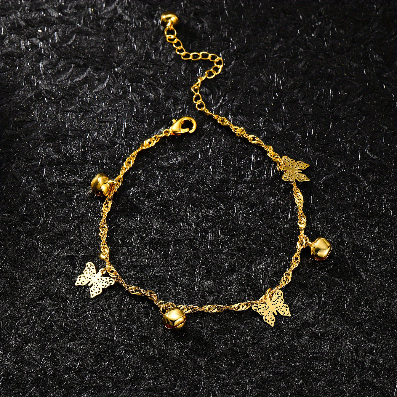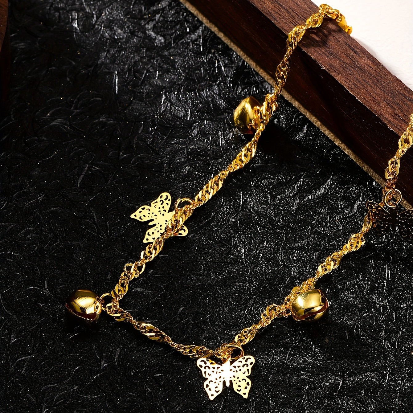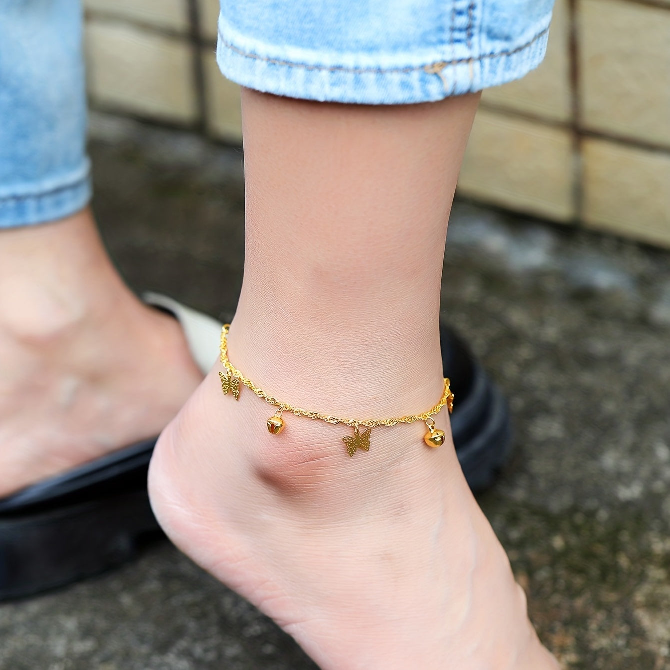 Elegantly designed ankle bracelet featuring a butterfly shape tassel pendant, perfect for adding a touch of style to your look.