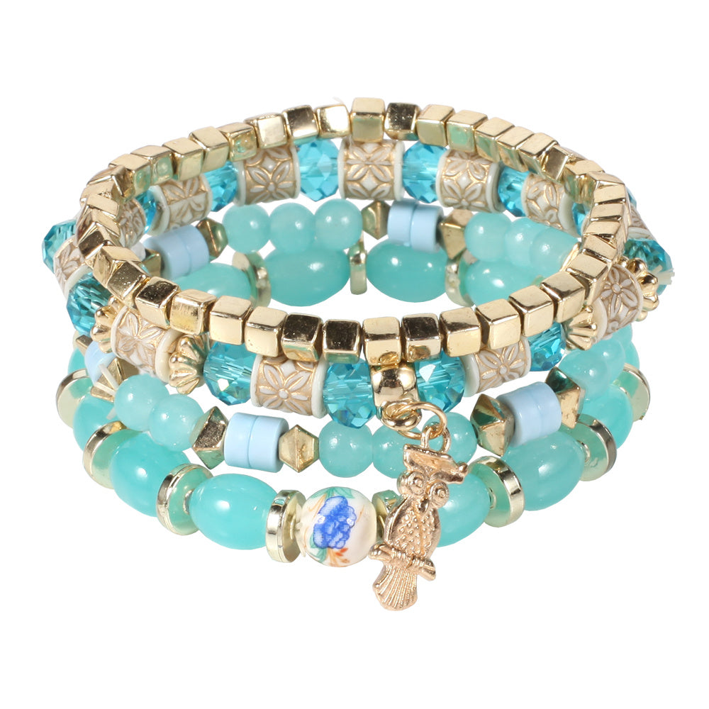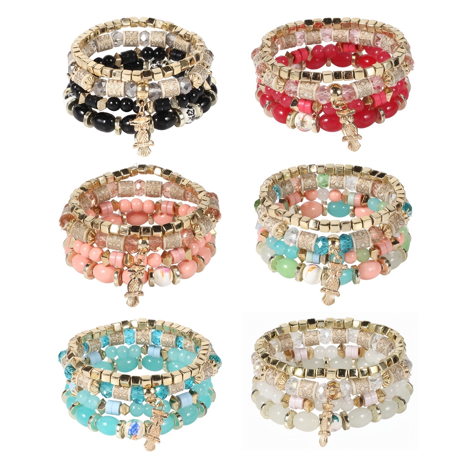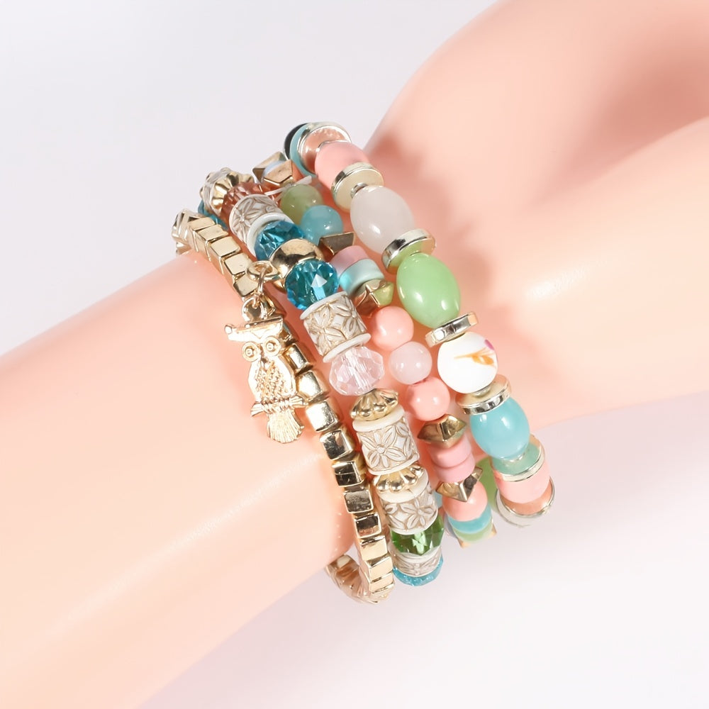 Elevate your summer beach look with this multilayer bracelet set featuring bird charms. Perfect accessory to complement your boho clothing and beach attire.