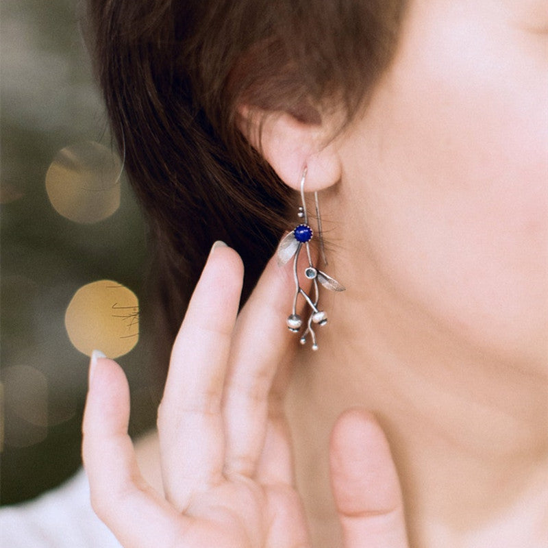 These unique dangle earrings feature a blueberry plant design with synthetic gemstones. Made of zinc alloy with a 925 silver plating, these earrings are creative and perfect for gift giving to females with a unique personality.